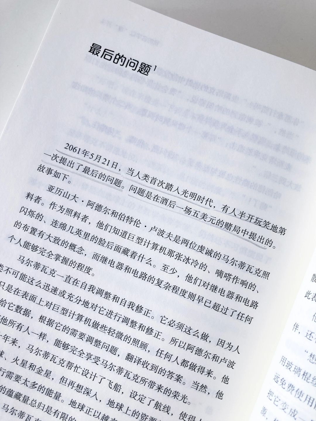 🪐故事设定在2061年,人类文明依托一台超 级计算机展开发展,在不断发展的过程中,人类不断追问“如何逆转熵”这个问题,计算机始终回答说“数据不足,无法给出有意义的答案”。