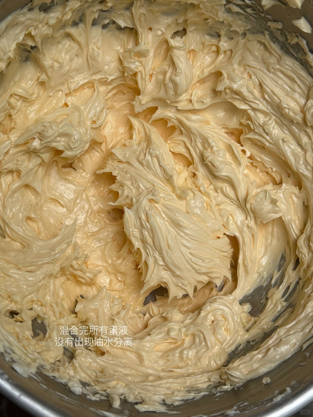蛋液在35℃最佳,分5次加入,每次充分搅匀