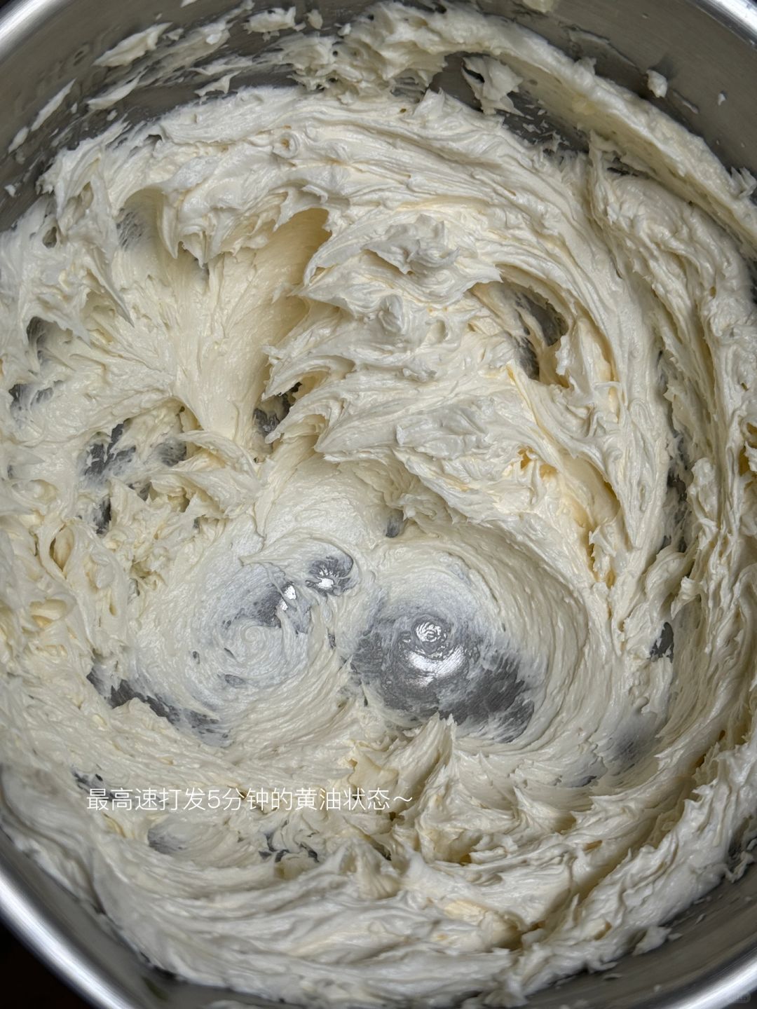 黄油打蛋器打发至顺滑,最高速搅打5分钟
