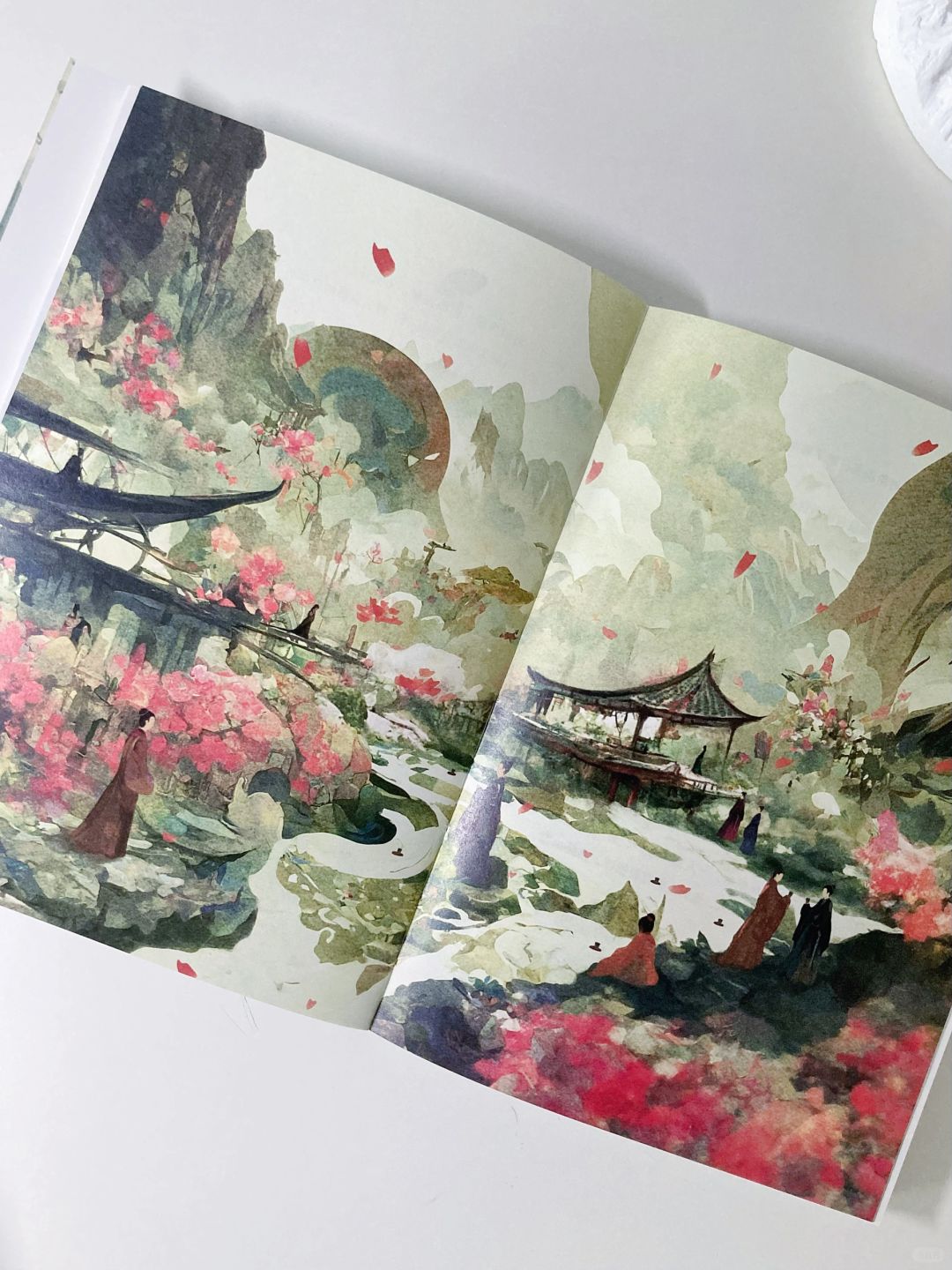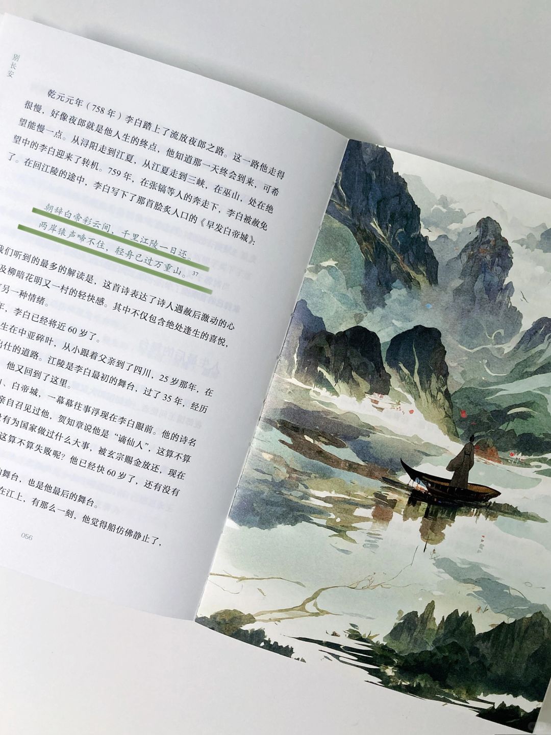 📚这本《别长安》,真真长在了我的审美上!全书彩印,诗画交织,一眼书封,则感意境深远,难道是李白的《早发白帝城》吗,太喜欢这种悠然的轻松感了~