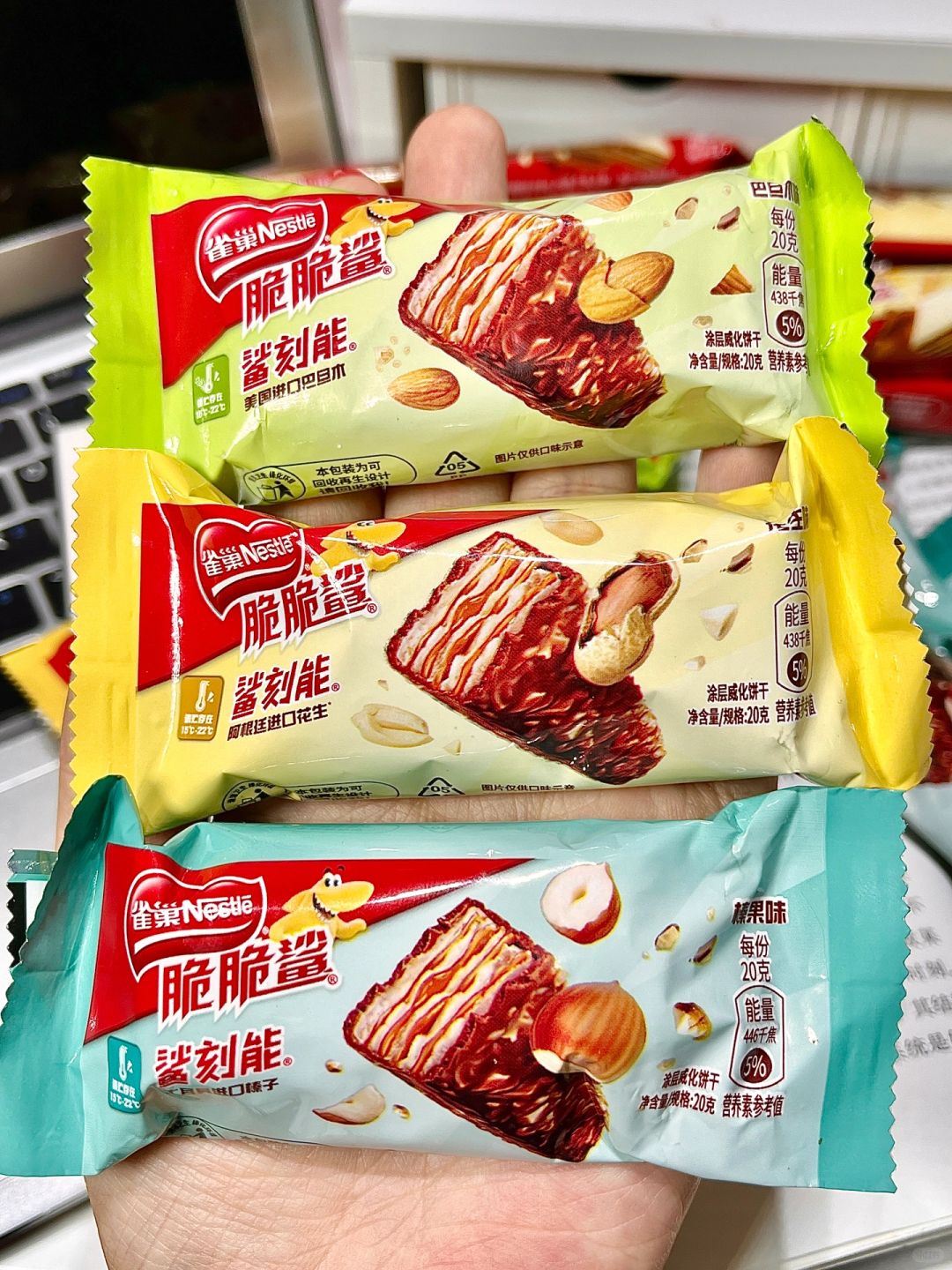 鲨刻能坚果系列,也是我要按头安利的,外面包裹着超厚一层的巧克力味涂层,还有大颗粒的坚果,吃进口的没有一口是不满足的,我超爱榛子的那一款,满嘴都是榛子的香味