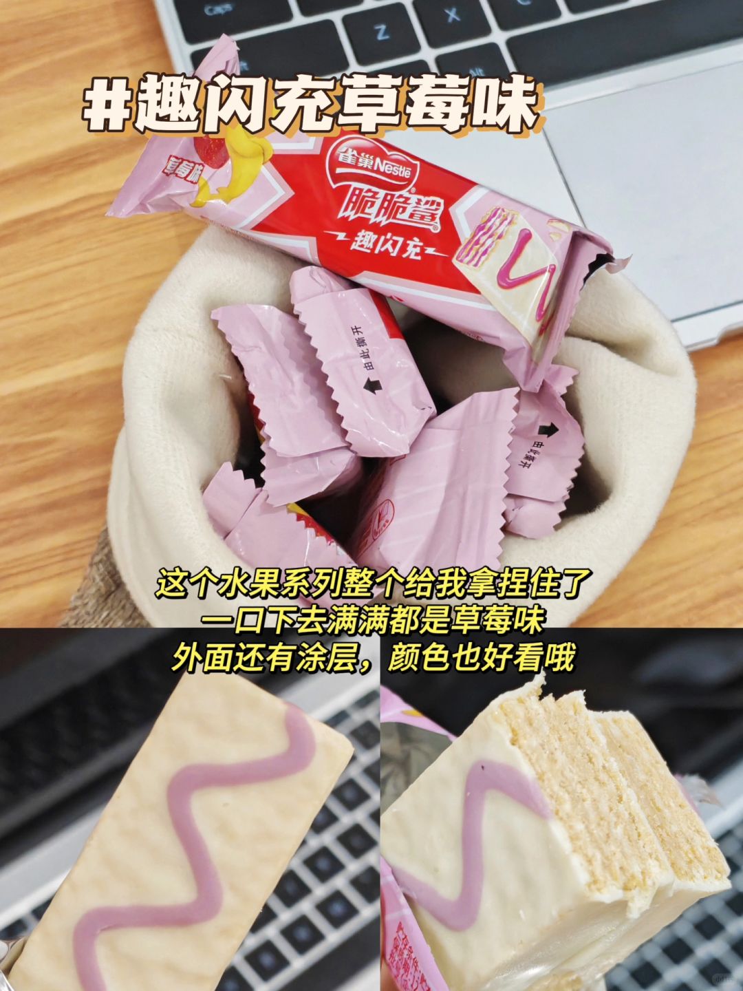 里面不仅有我爱吃的经典巧克力味牛奶味威化饼干,还有趣闪充的果味系列,也是狠狠给我拿捏住了,巧克力味涂层混合威化饼干,还有不同味道的夹心,每一个口味吃下去都是不一样的感觉