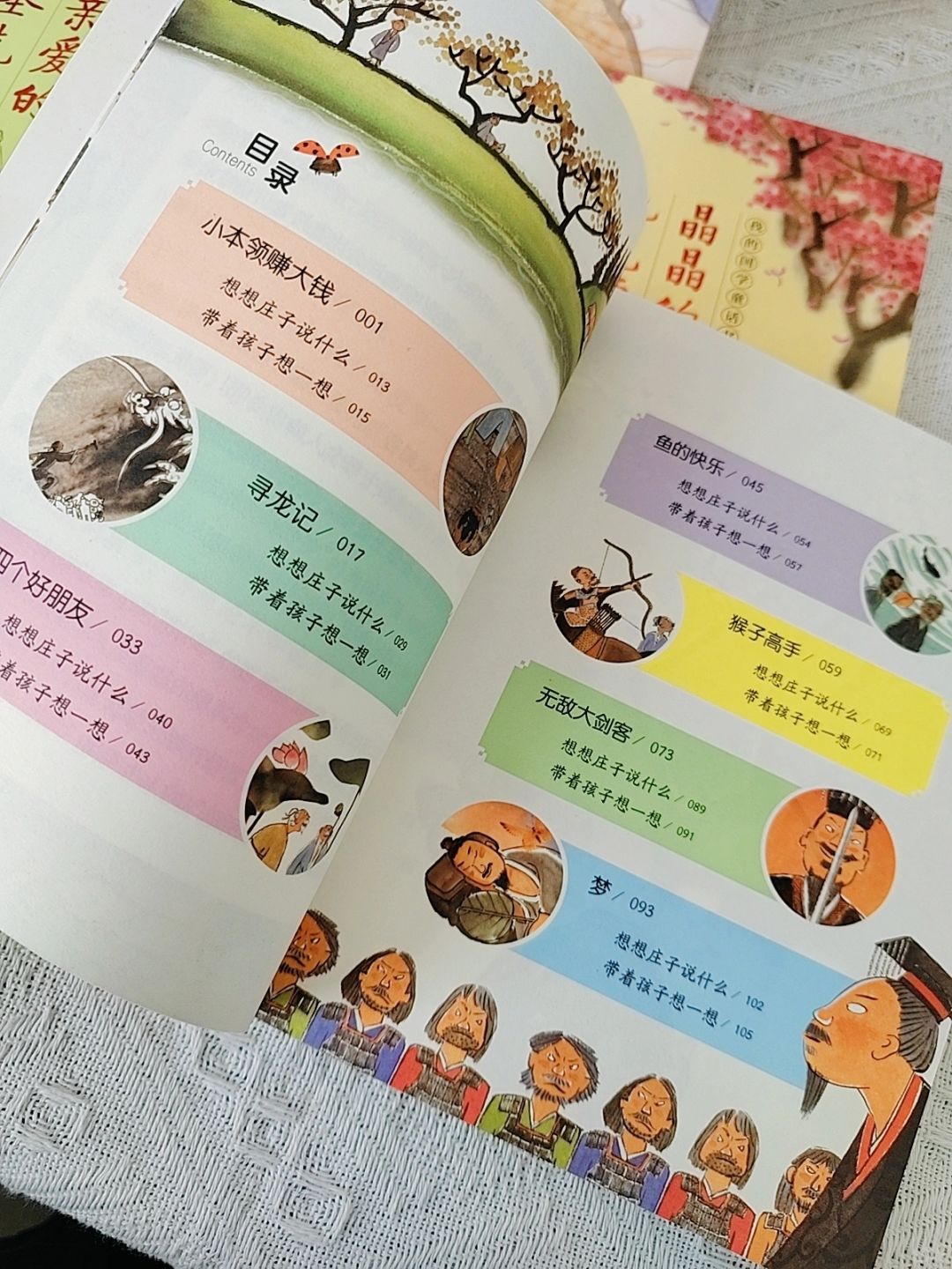 两本书,包含了7个小故事,每一个都像穿越时空的密码,带孩子们解读《庄子》中鹏程万里、庄周梦蝶、井底之蛙、朝三暮四、蜗角虚名、蝇头微利等的由来和出处,让孩子领略古典文学的精粹,并让孩子懂得许多人生道理: