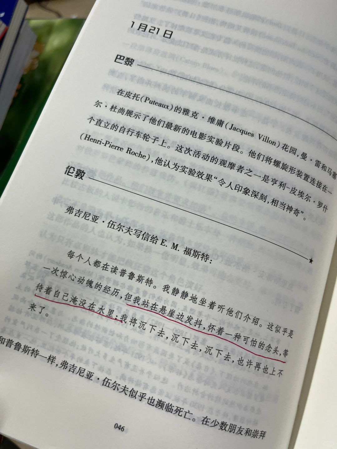 本书从1922年1月1日开始写。在这一天,写道,布鲁斯特很有名,但也病得很重;在1月21日,弗吉尼亚·伍尔夫在写给E.M.福斯特的信中,说自己“站在悬崖边发抖,等待着自己淹没在水里,再也上不来”。那时,她仍默默无闻,健康状况很差;1月27日,弗朗茨·卡夫卡开始写他的最后一部重要小说《城堡》,他的健康状况也很差……