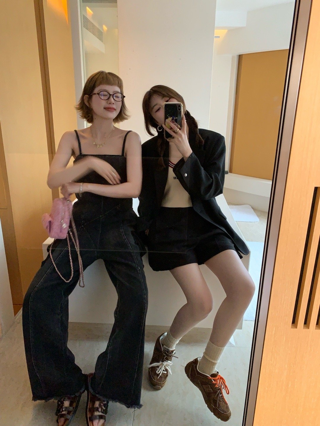 推荐一下吊带牛仔裤奥和常规背带裤都不一样黑灰色时髦兮兮的song1条哦😽