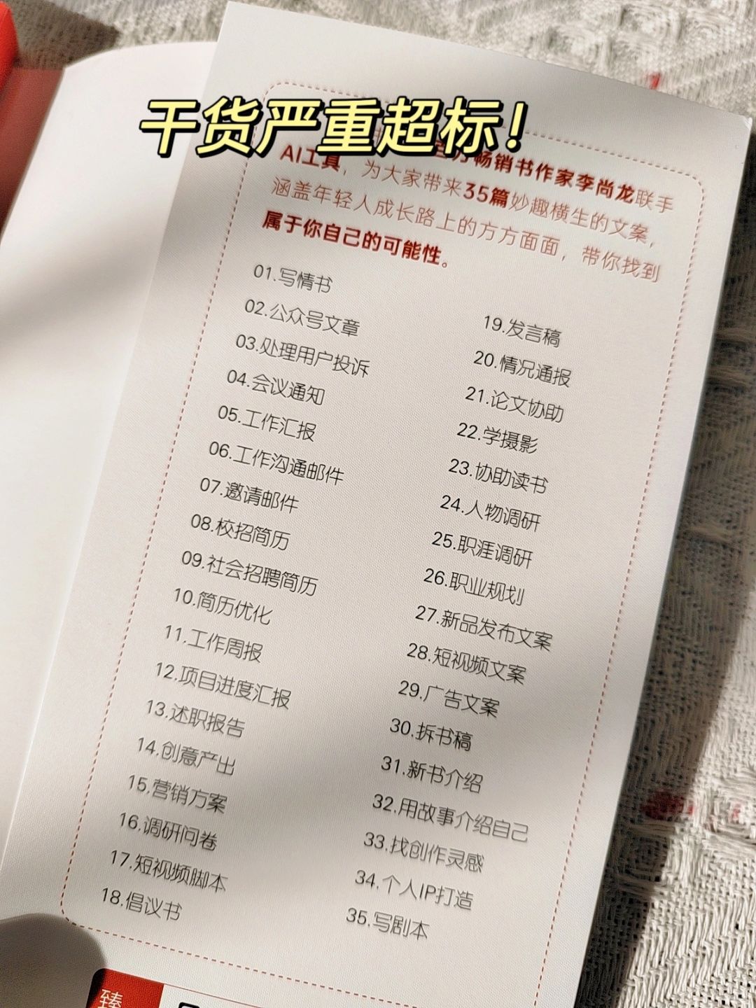 与其担忧,不如让它更好的服务于我们的工作和生活!!而这本书,就是手把手教我们如何运用AI,打开新型工作方式,从而提升我们的工作效率👍