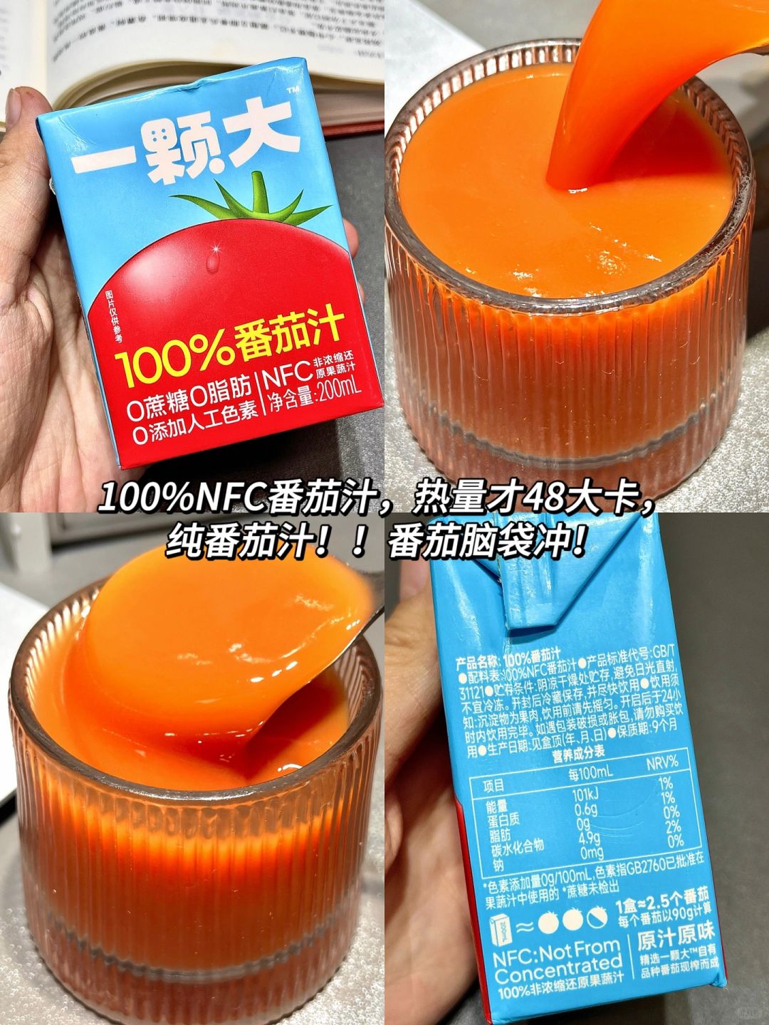 这个0脂0糖的番茄汁是我最近的心头爱!我真的从小就爱吃番茄,但是又感觉番茄生吃起来太麻烦了,这个番茄汁真的太适合我这种懒人了,喝起来酸酸甜甜,超级浓郁的番茄味,和生番茄的味道几乎没差,每次健完身喝一瓶超级方便!而且这个是100%NFC番茄汁,配料表里只有番茄,小小一盒相当于2.5个番茄,热量也超级低!一瓶才48大卡,完全不用担心长肉肉!喝完饱腹感很强,完美地避免了我再去吃其他零食哈哈哈,它家还有一款94%加赤藓糖醇,怕酸的还可以试试这个口味!