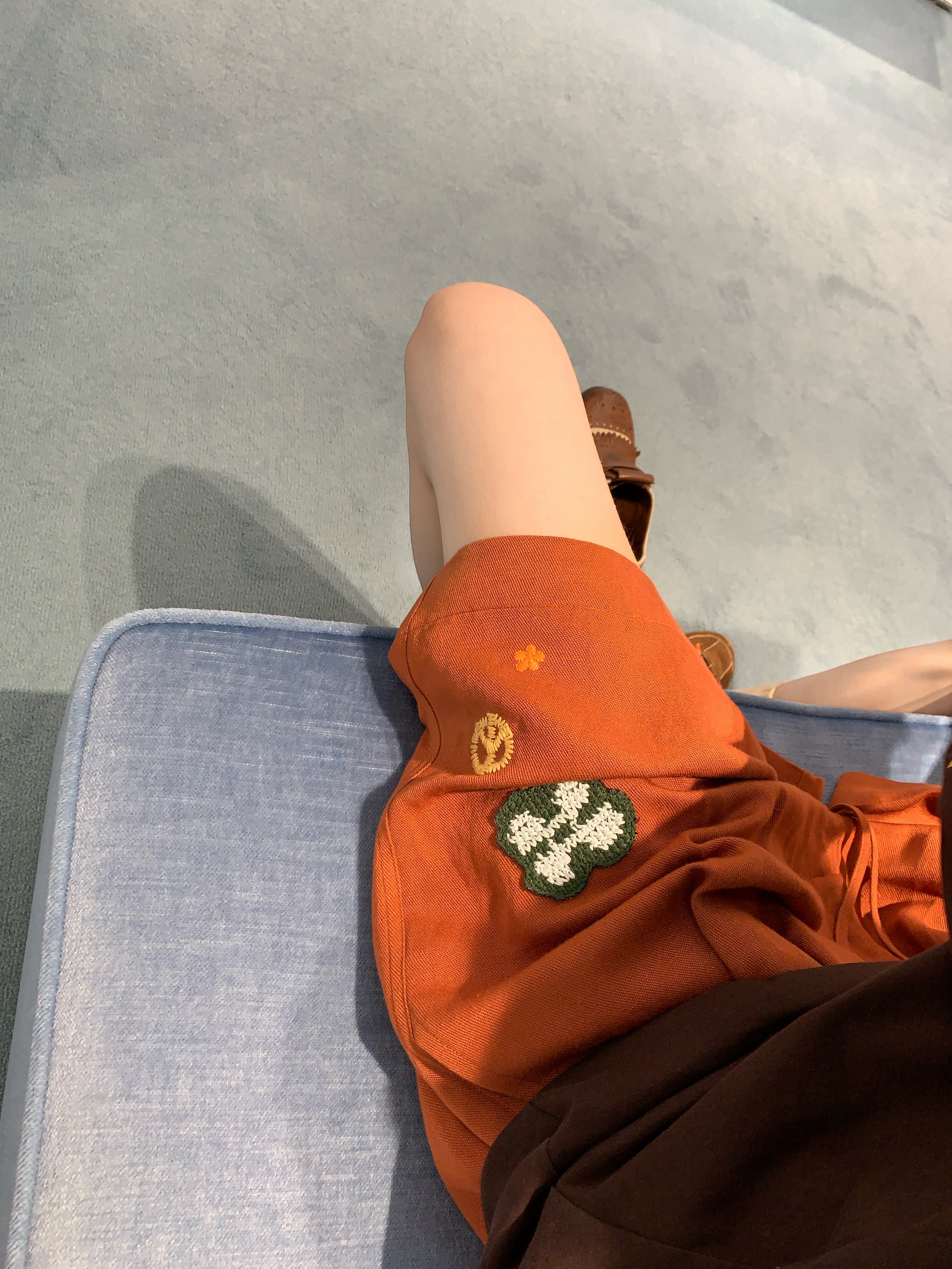 晚上给这款花花毛衣一起出镜 黑色就很跳脱的撞色是我很喜欢的 南瓜橘手工毛衣很北欧