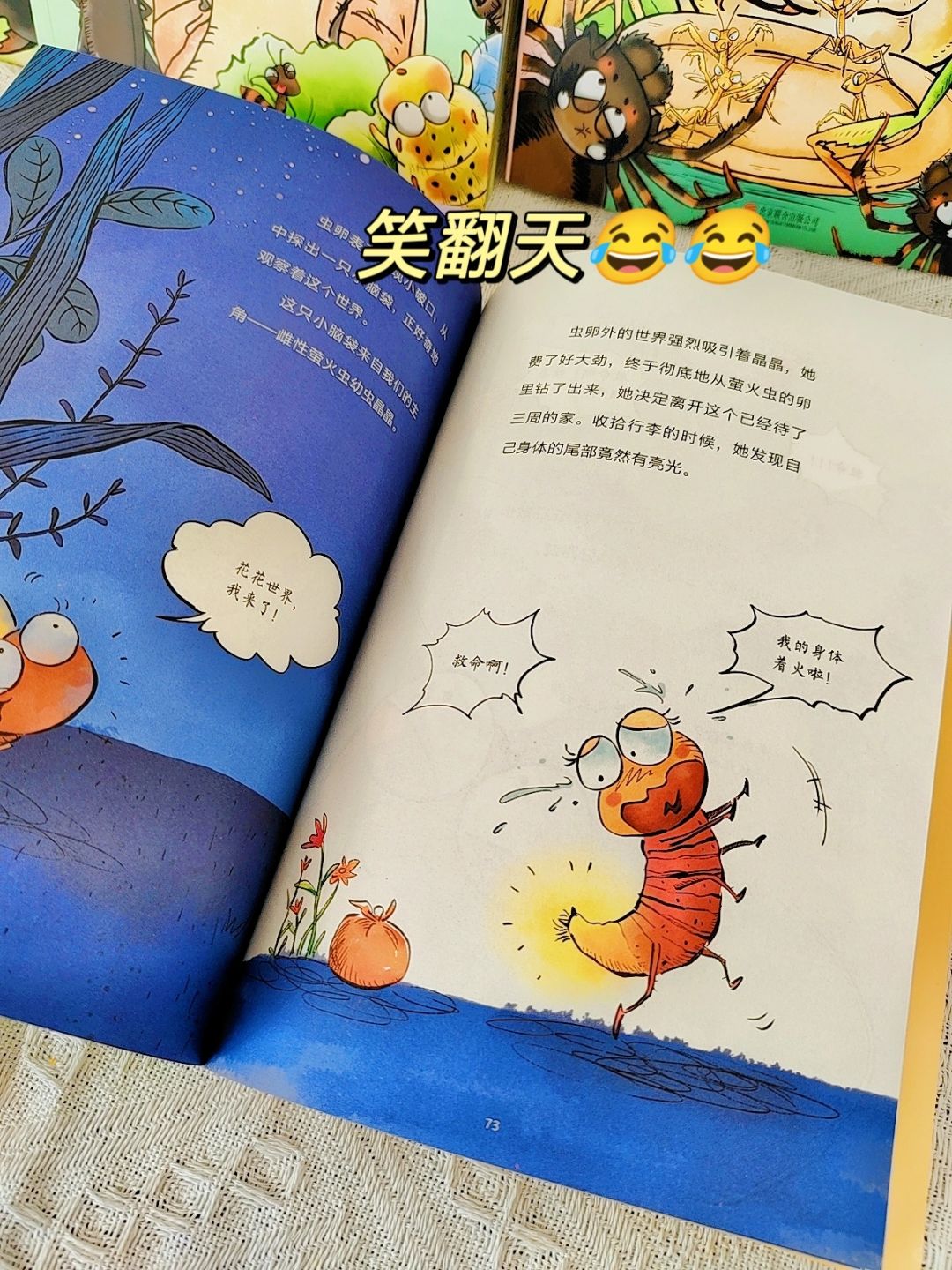 比如描写萤火虫是,它刚从虫卵钻出来时,看见自己身体的尾部有亮光,跑着喊着:救命啊,我的身体着火啦😂😂(要被笑死)