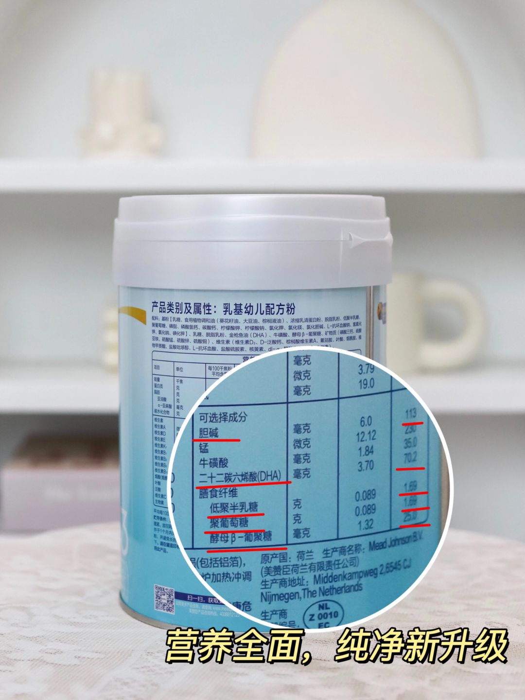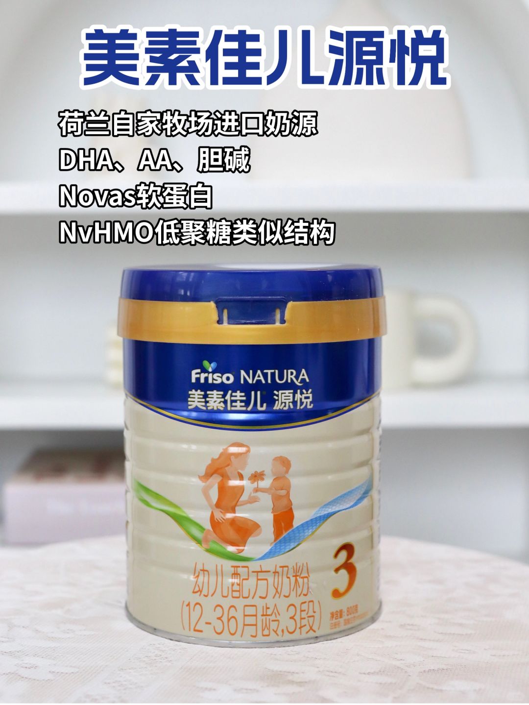 ★美素源悦:内含DHA、AA、胆碱等脑部营养,成分略单一。三段DHA含量为18mg/100g可以额外再给宝宝补充些