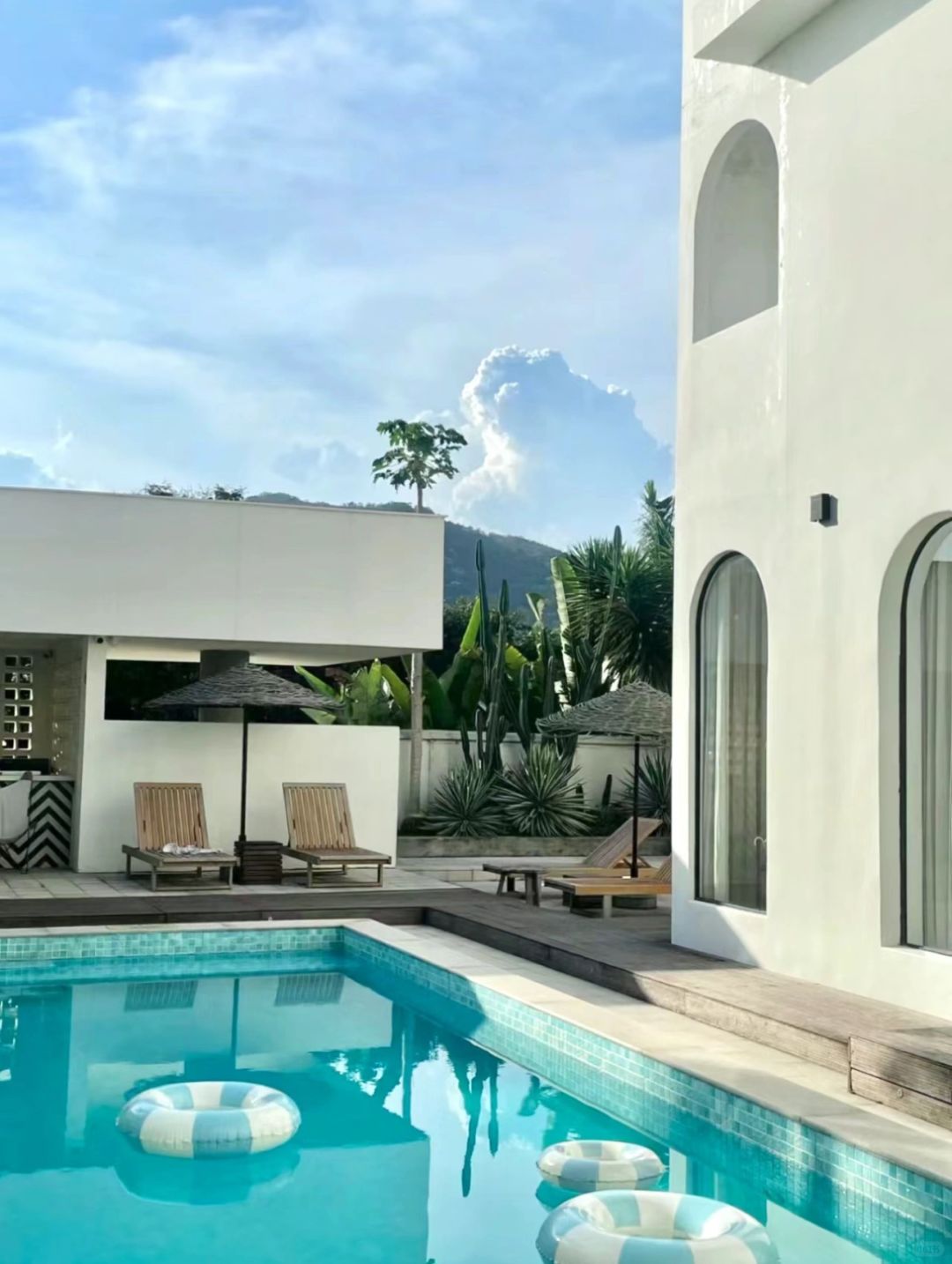 在厦门民宿的泳池旁边拍的照片,感觉来到了三亚!!!下次拍这组一定要是晴天!!☀️