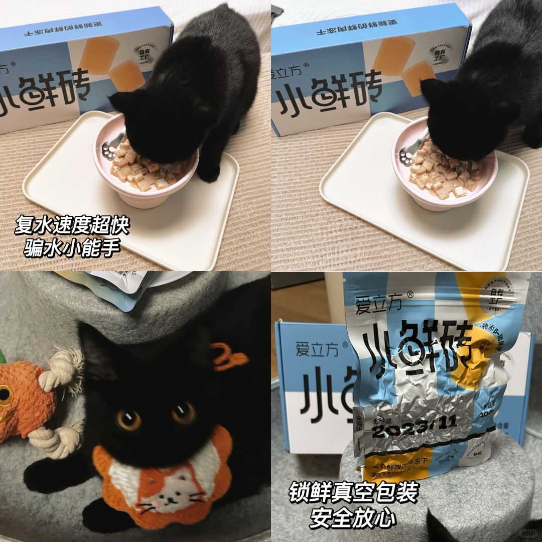 1️⃣爱立方是国产做猫咪冻干的老品牌,自有工厂,品控一直很好。小鲜砖每月还会送权威机构检测,检测报告公开,安心可靠!