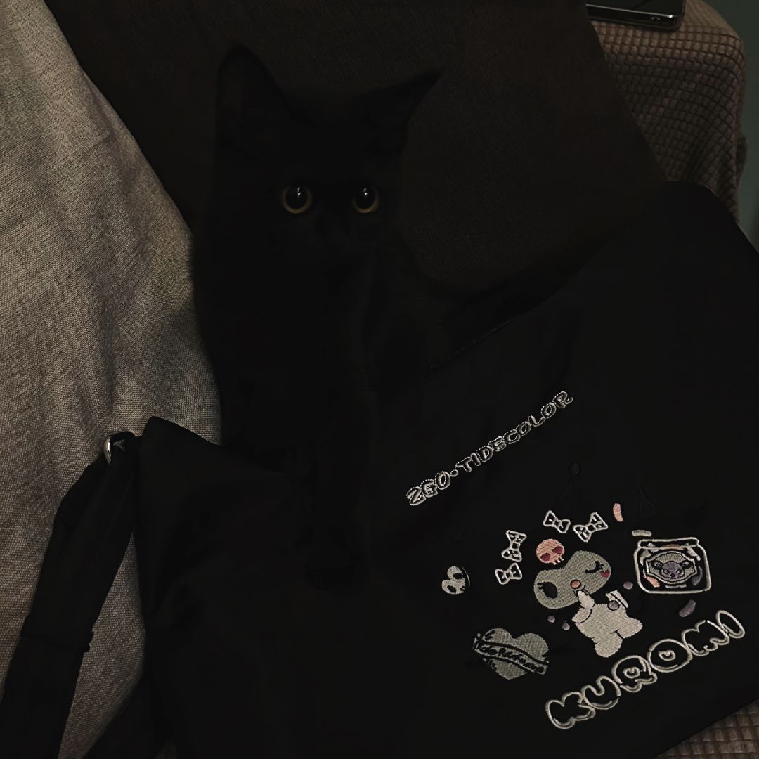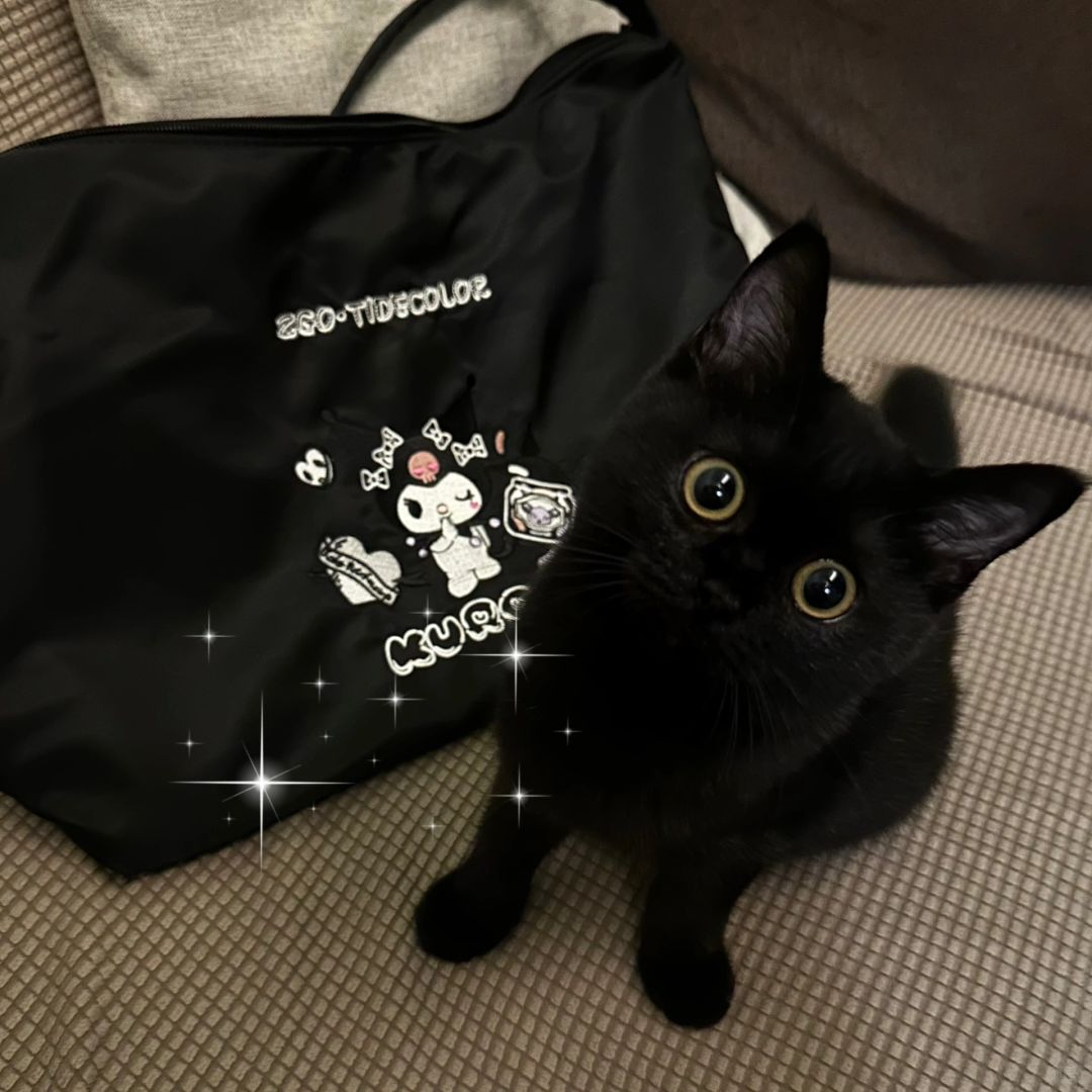 宝宝自己的高级麻袋、、上面印着库洛米耶、平时带糊糊出去玩给糊糊装零食玩具完全不在话下! 酷洛米像小黑猫一样又酷又可爱、、
