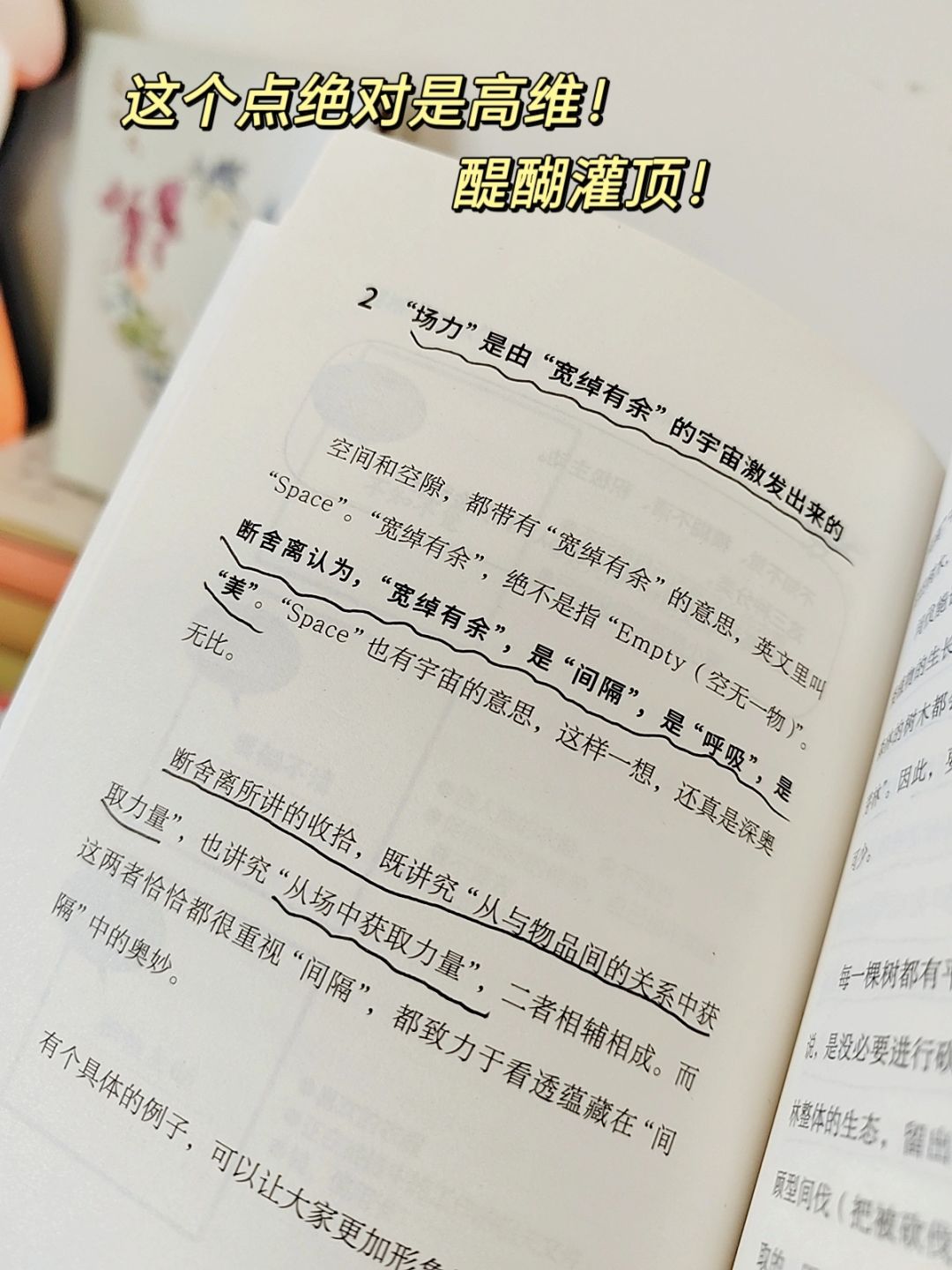 ✔️书中先让我们从高维角度、高维视角认识我们与物品的关系。通过断舍离,帮我们重新唤醒自己的“分析、思考、感觉”系统。