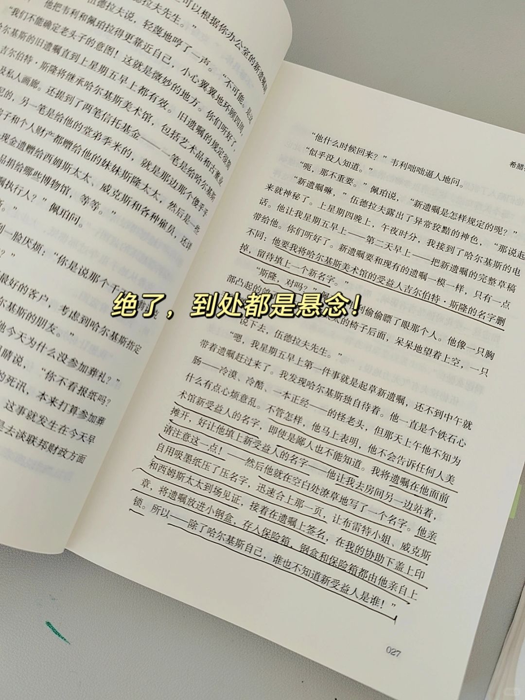 书中谜团重重、反转不断、剧情足够烧脑、一波未平一波又起的刺激感,加上怎么猜都猜不到的结局,大家都说,只有奎因和上帝知道结局😂😂……把这本书的阅读炸裂感推向巅.峰👍👍👍