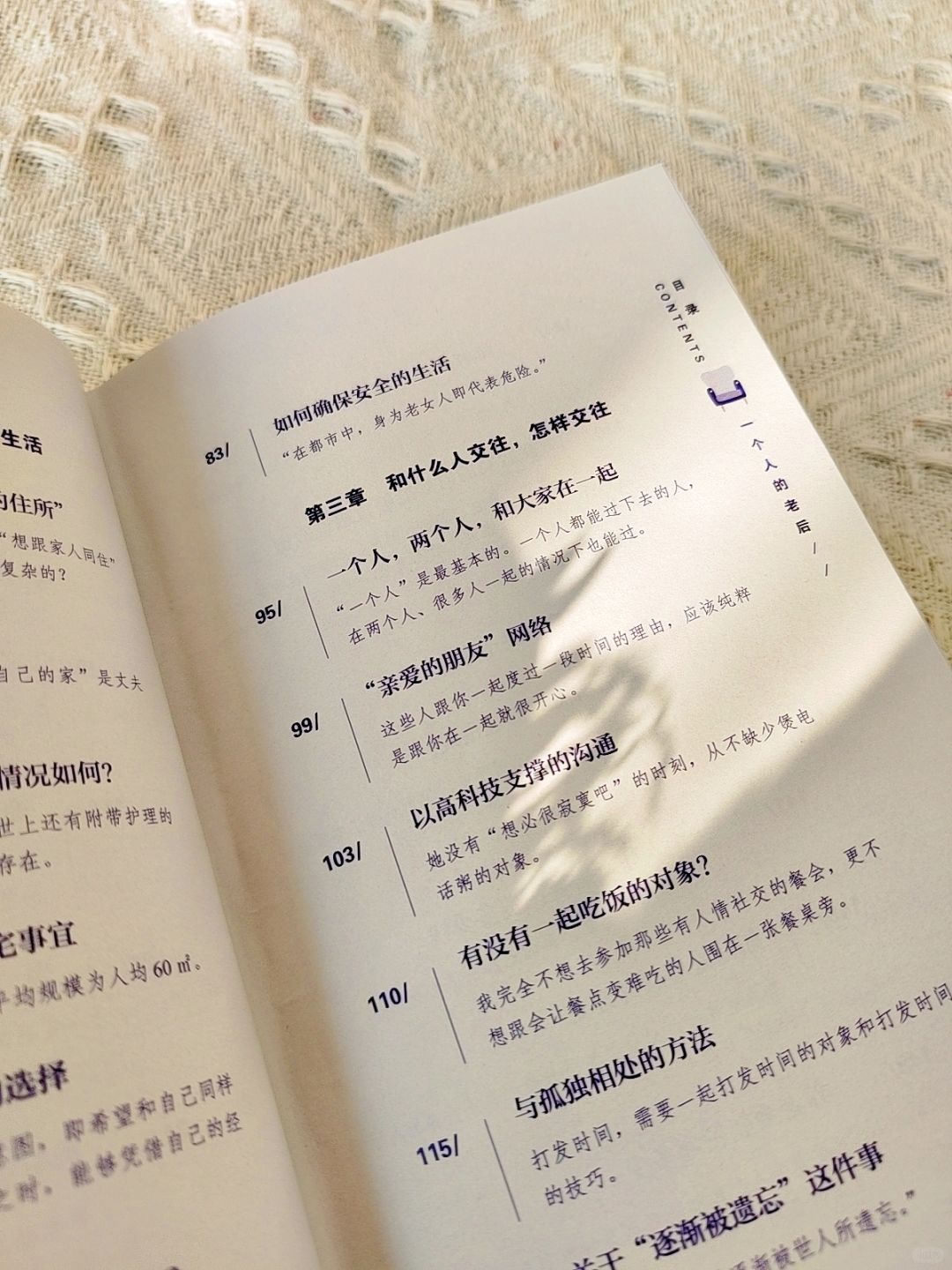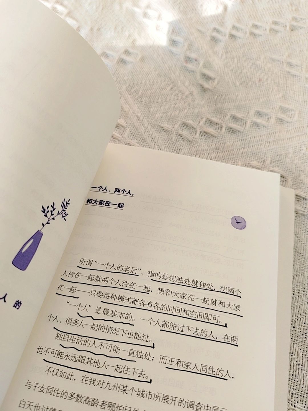 ✔️拥有独处能力的人,内心都比较清醒,他们拥有足够的时间,把生活规划的井井有条,上野千鹤子在书中为我们分享了一个人如何高质量的生活:和什么人交往,怎样交往、关于金💰的管理…以及老后在哪里生活,怎样生活、养老金够不够用、蕞后卧床不起谁来照顾…真诚的文字里,全是实用的干货…
