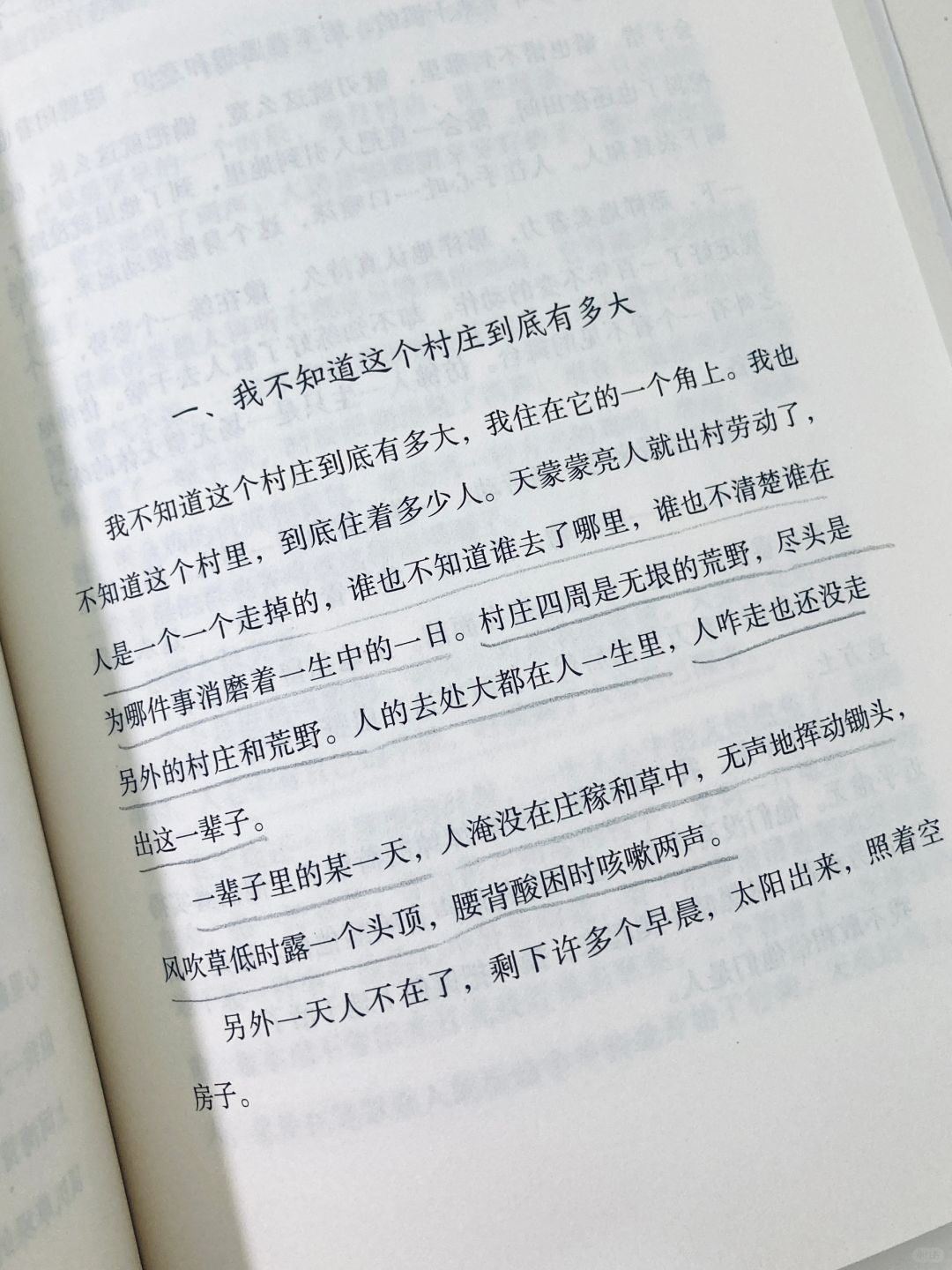 ✔️“村庄四周是无垠的荒野,尽头是另外的村庄和荒野。人的去处大都在人一生里,人咋走也还没走出这一辈子。”
