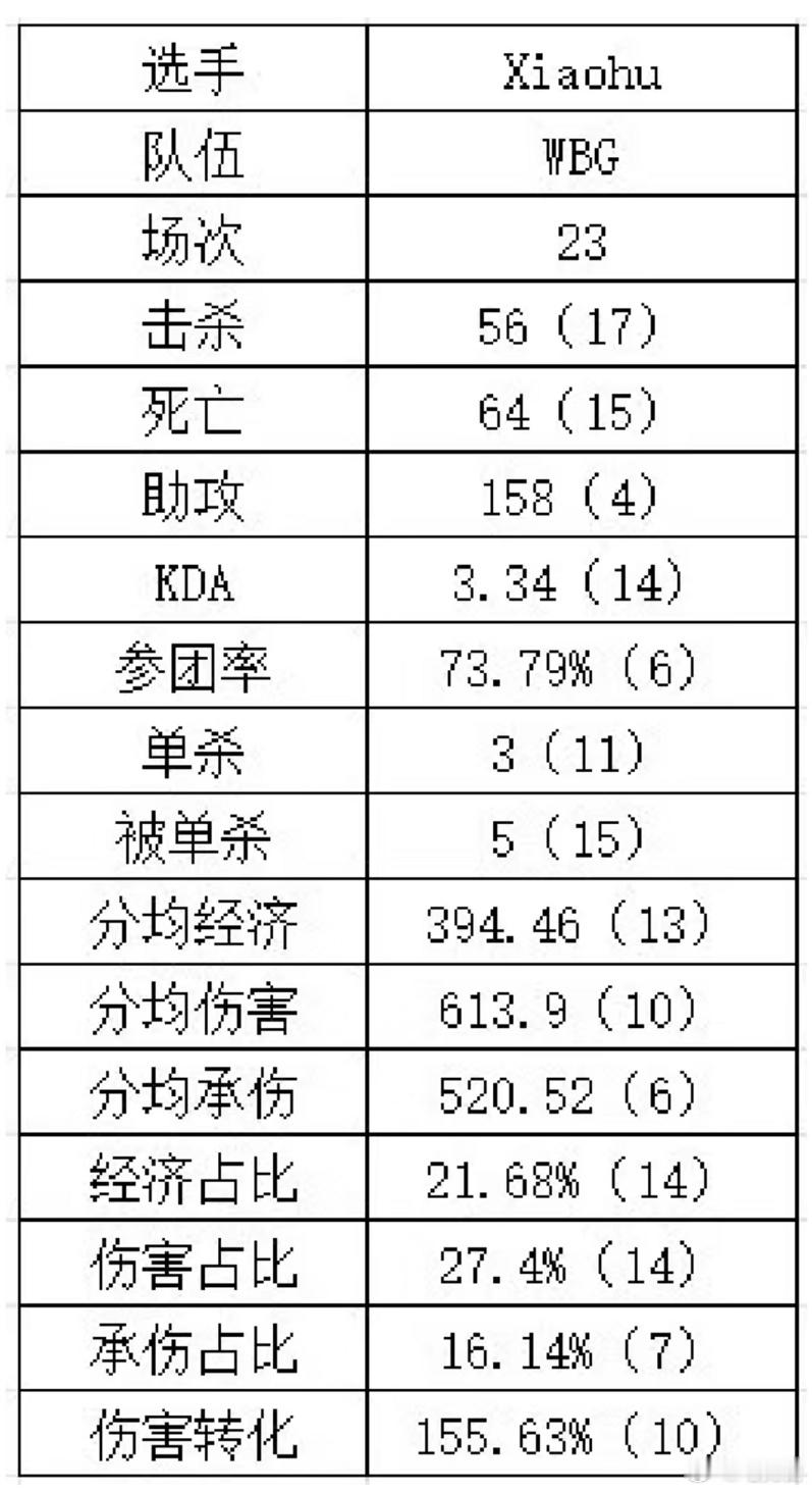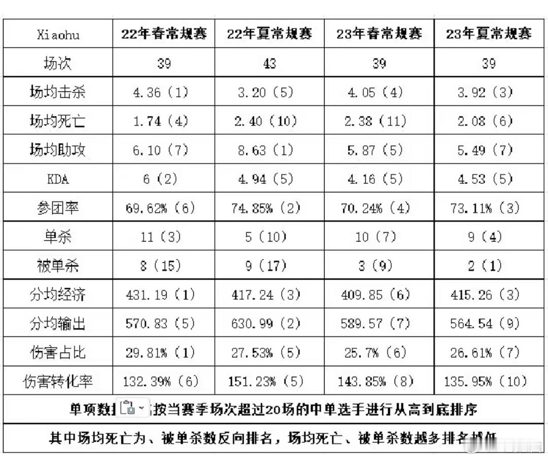 状态奇差? xiaohu 多项数据位列联赛中下游