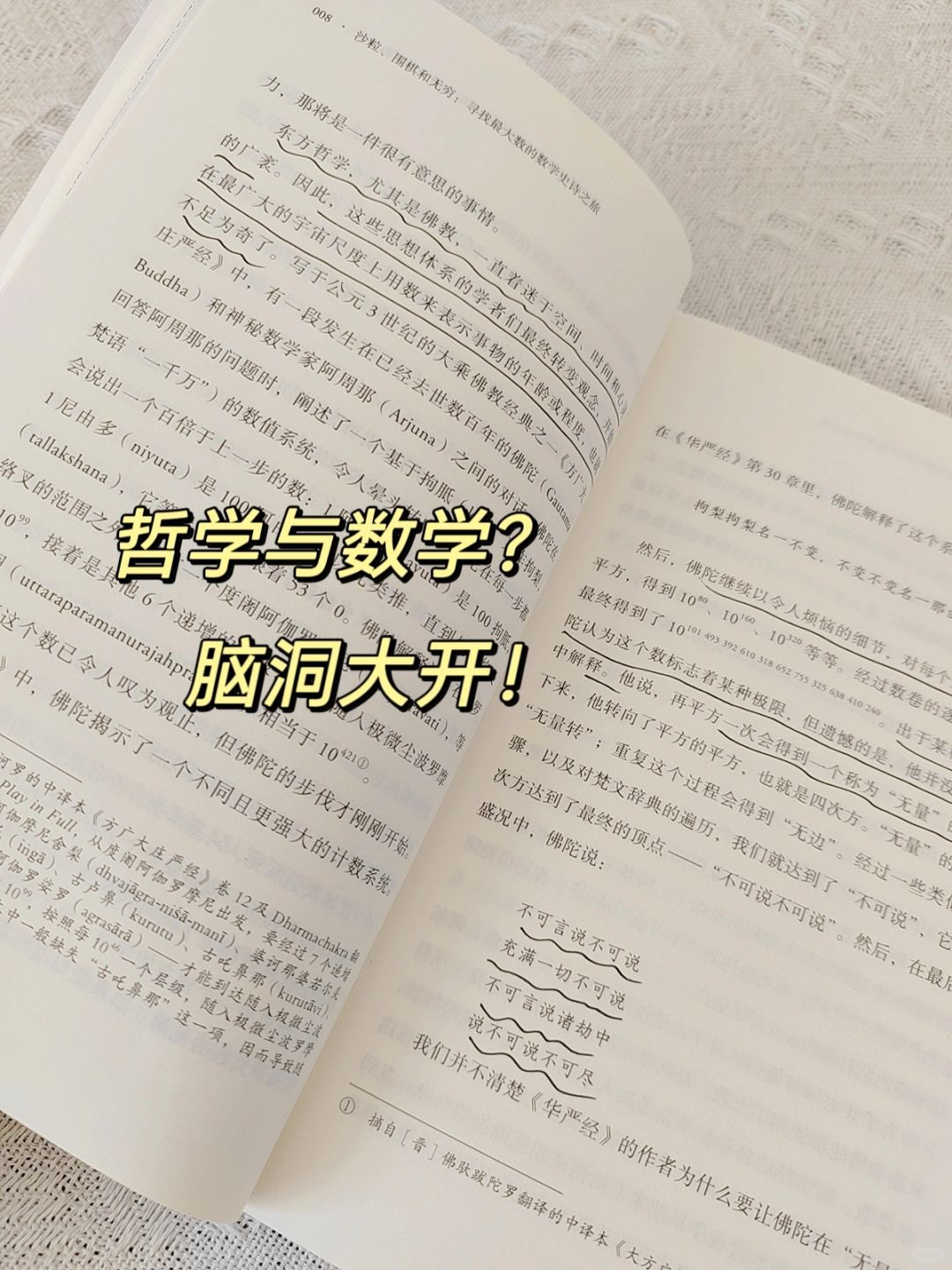 书中把哲学中的空间、时间、无量…与数学中的无限,蕞大通过佛陀的故事,向我们一一展示,巨烧脑!巨颠覆思维!