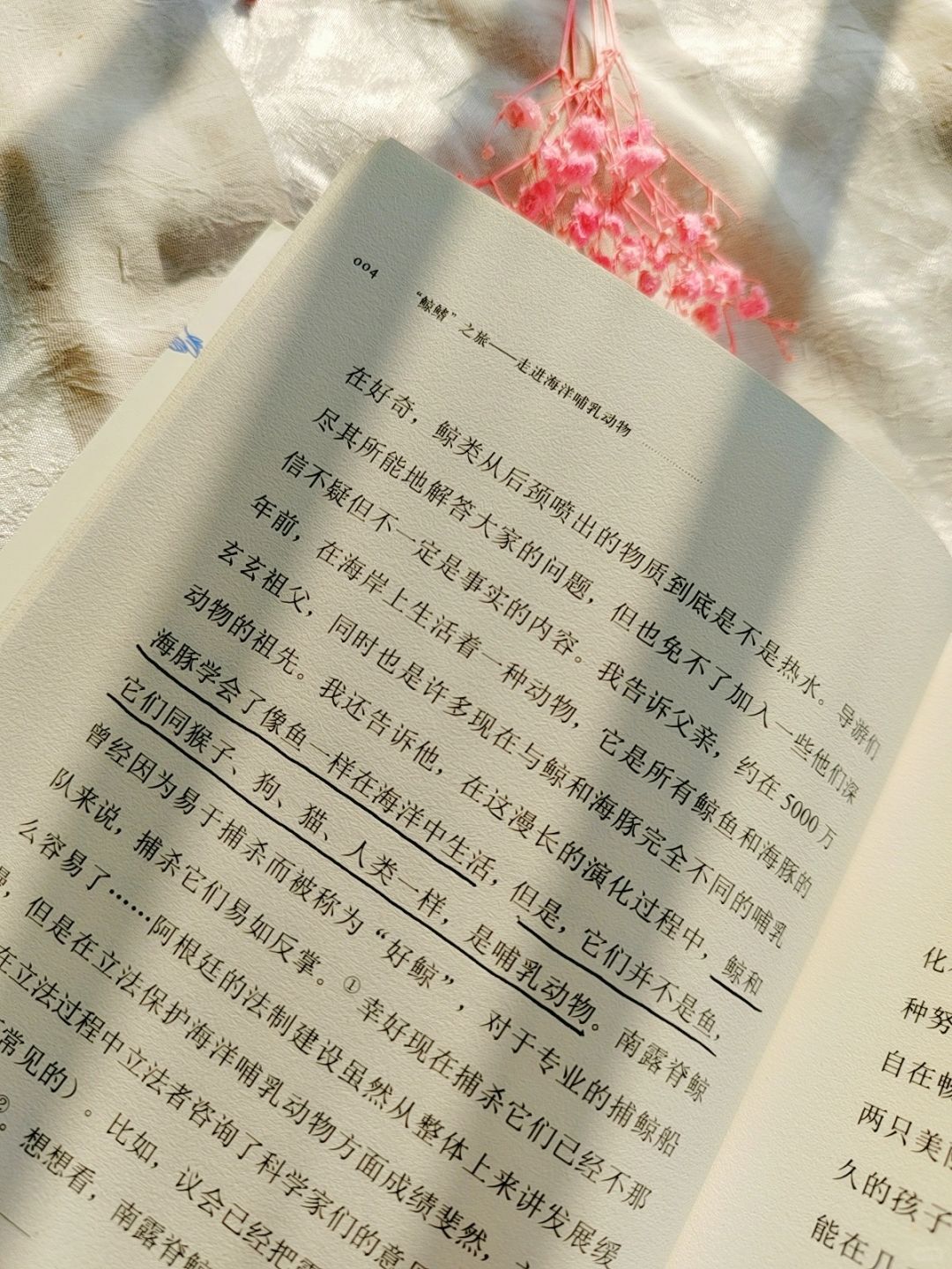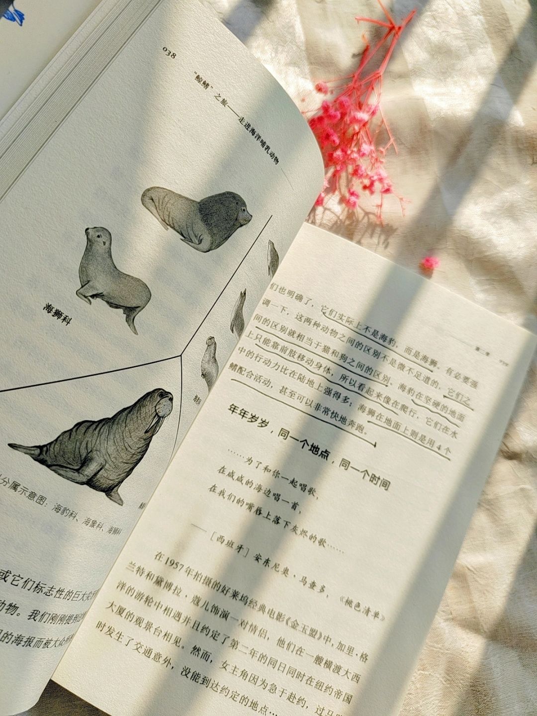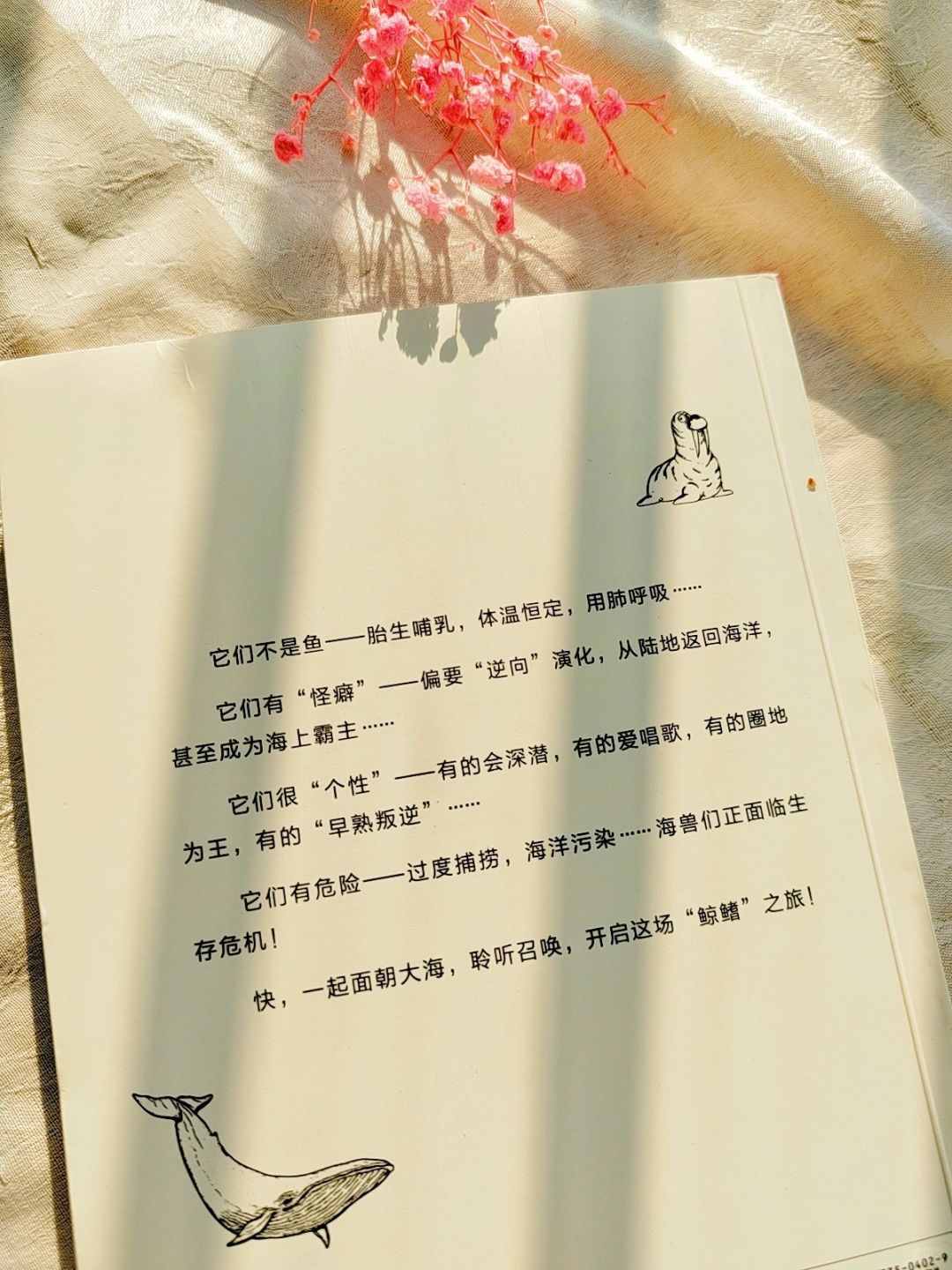 比如读完《“鲸鳍”之旅——走进海洋哺乳动物》这本书,我就感觉自己学到了好多知识,第一次对于鲸、海豚、海豹、海狮等海洋哺乳动物了解得这么详细: