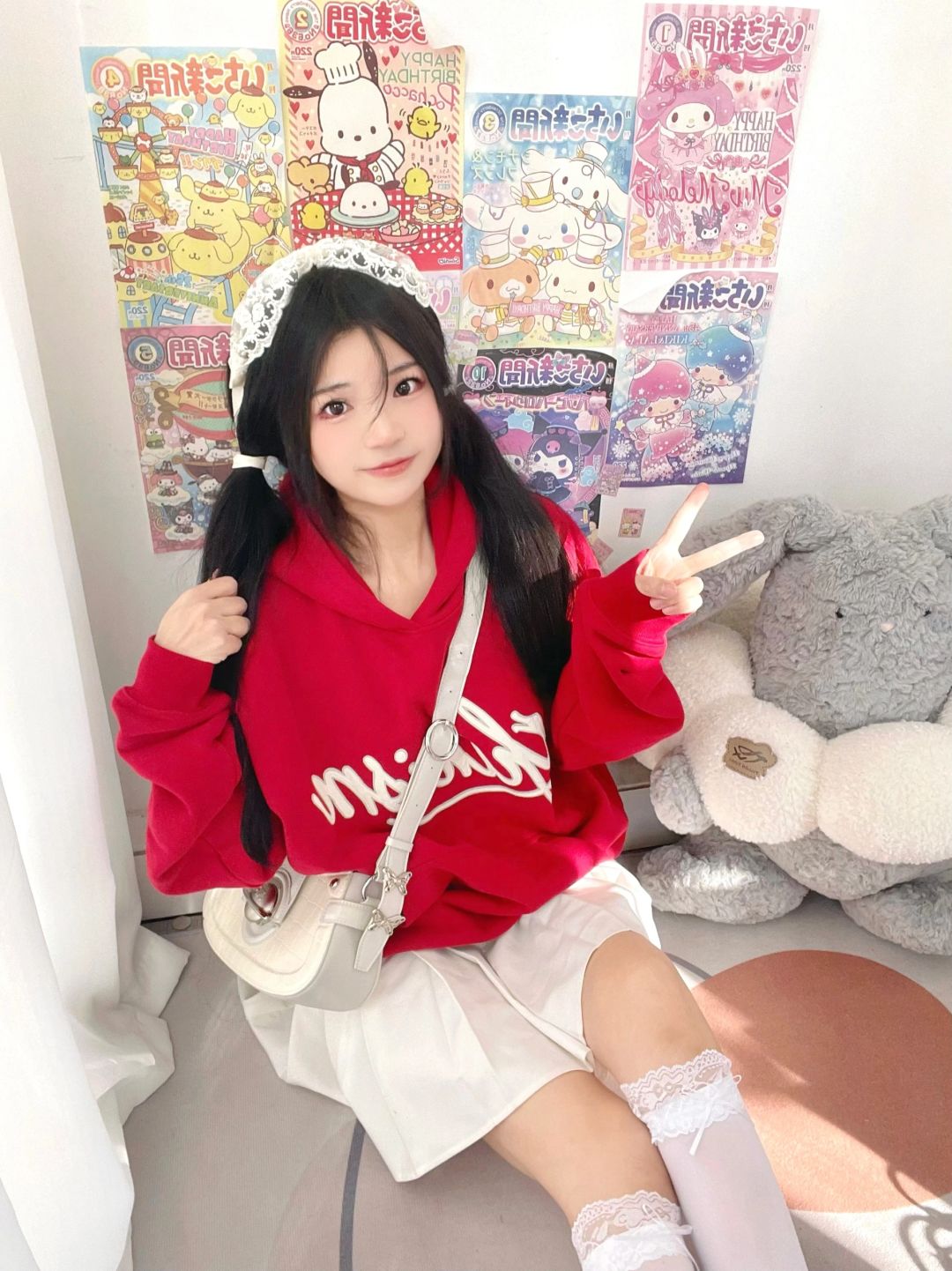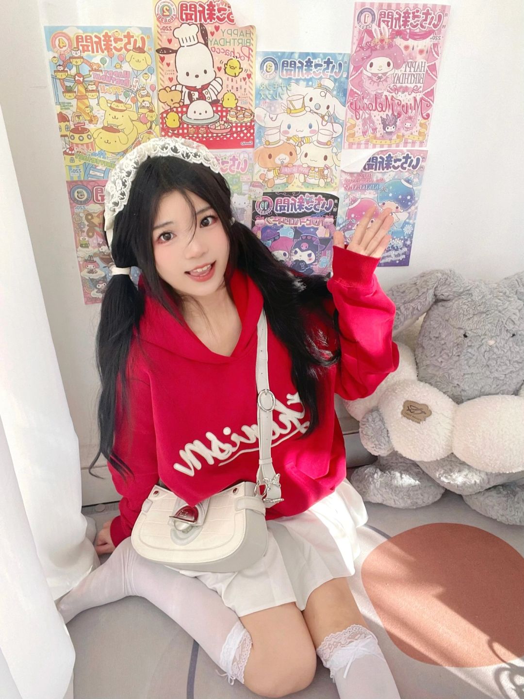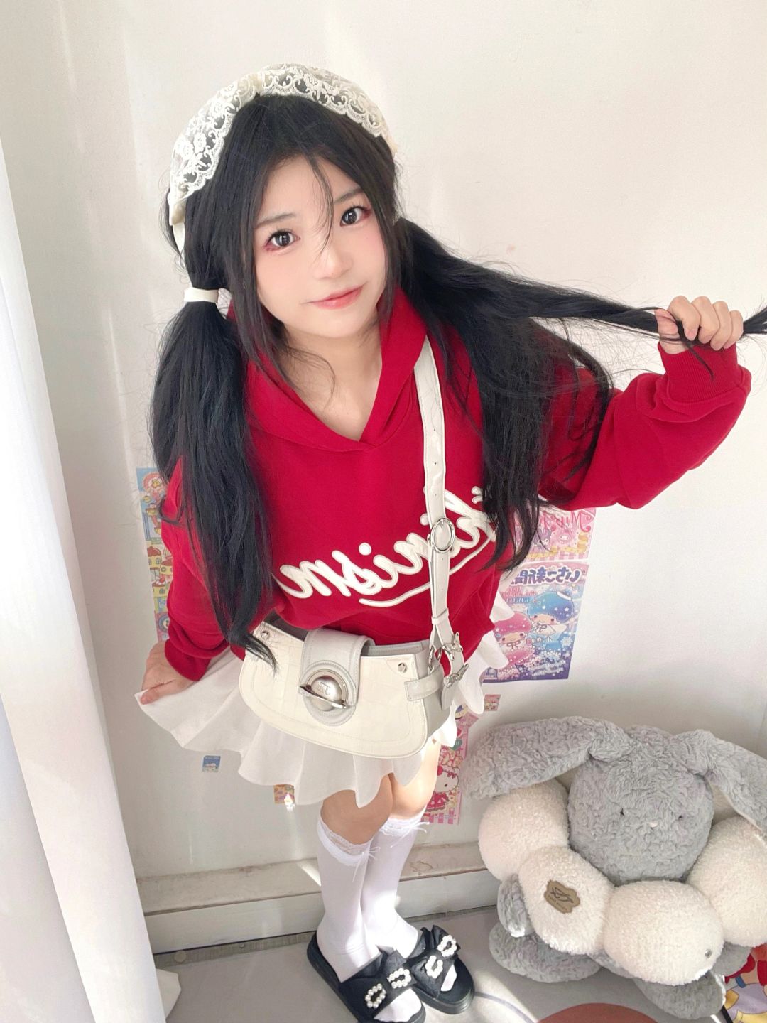 出门前随手拍~红卫衣➕百褶裙好青春活泼!