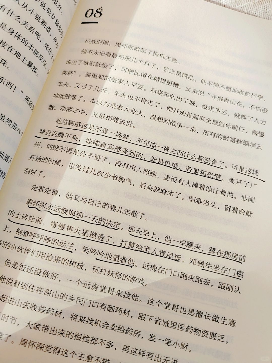 祖辈之间的爱恨牵连…父辈之间的恩怨纠缠……加上作者对于生活起居、一日三餐温暖、细腻、又朴实的描写,就仿佛走入了他们的真实生活,尽情去感受那满满的的生活气息、浓浓的人生韵味。尤其是那三代人命运的起起伏伏,恩恩怨怨…仿佛打开了我的视野,让我站在高处看人生……豁然开朗!