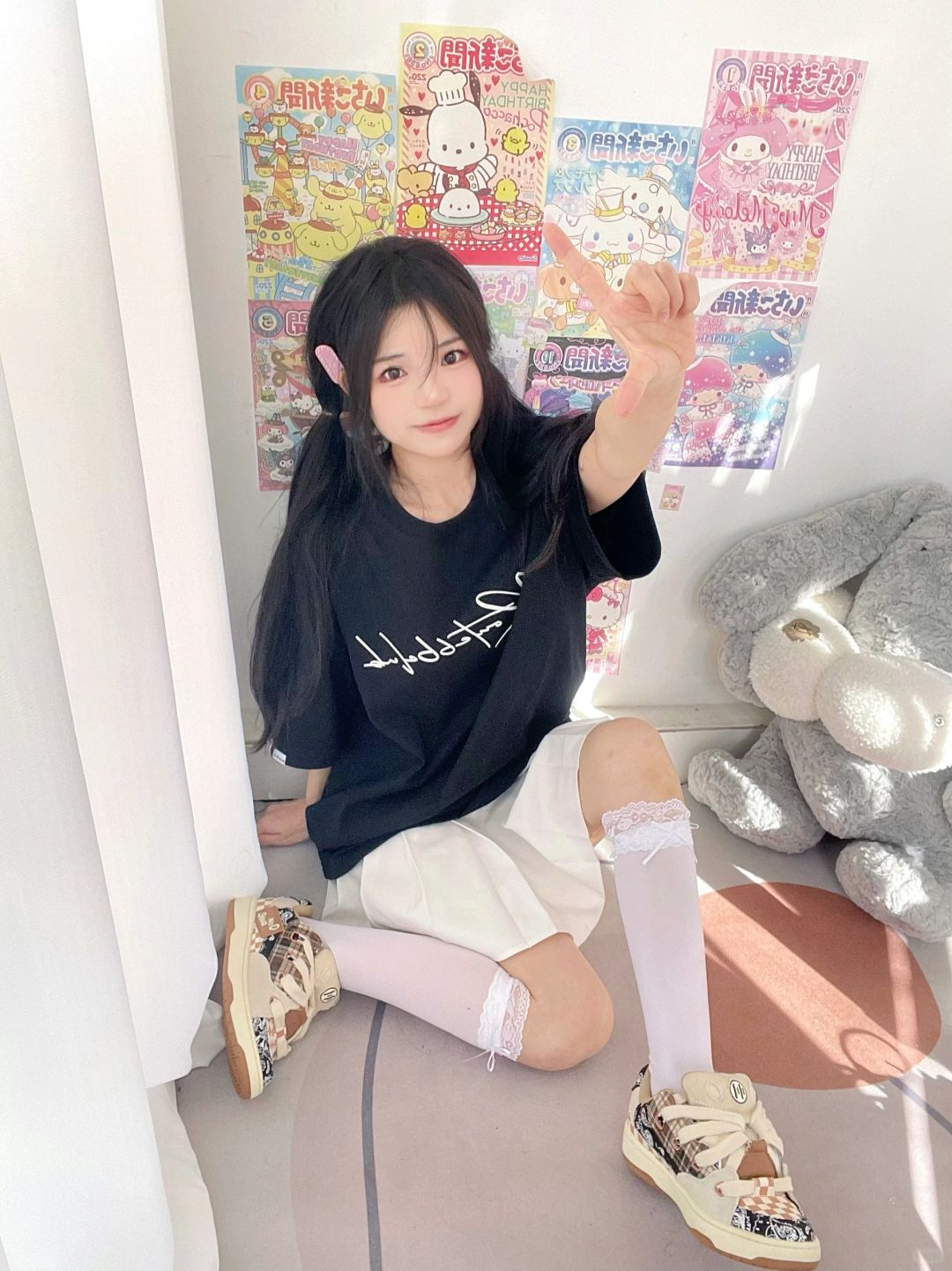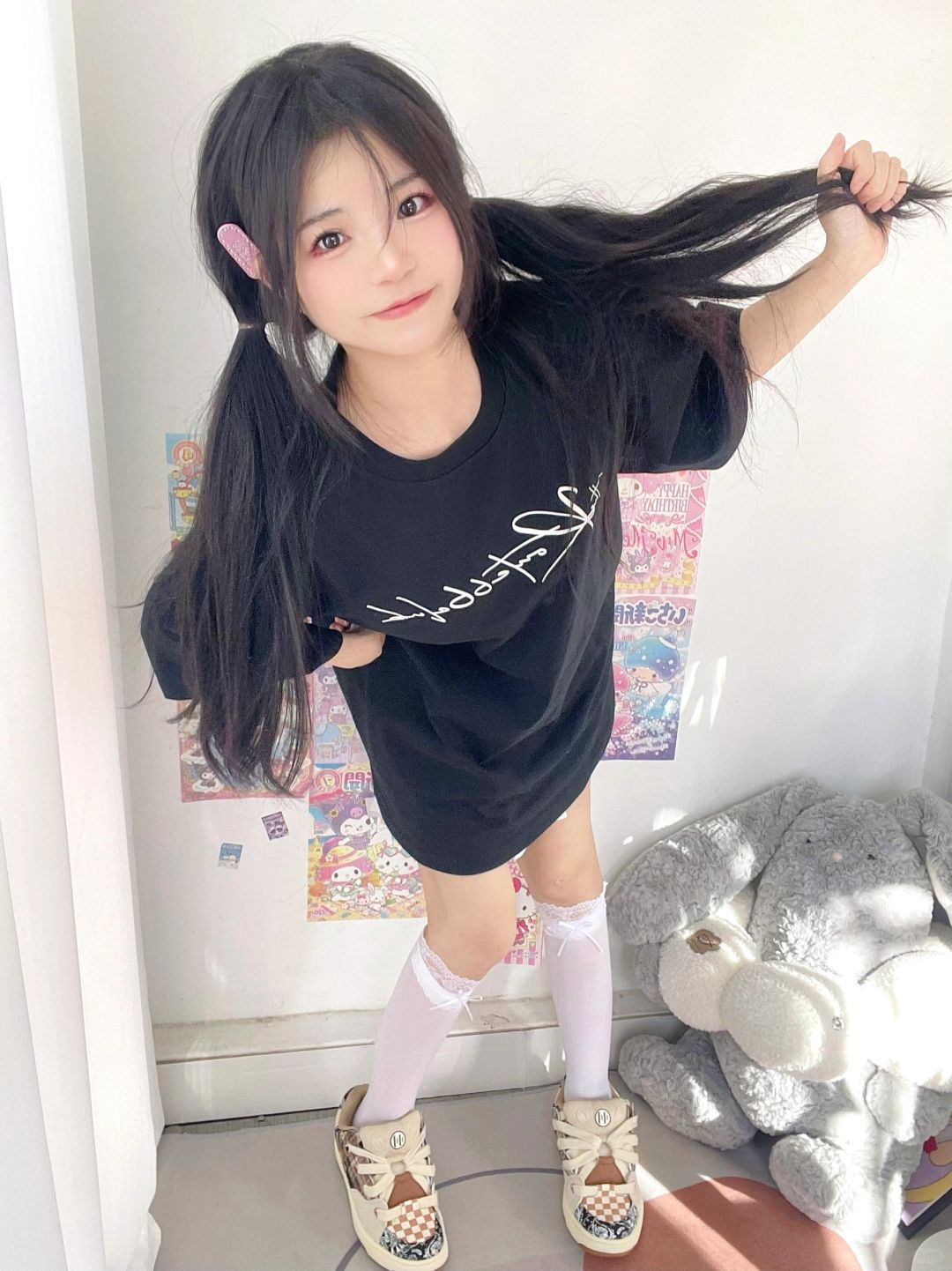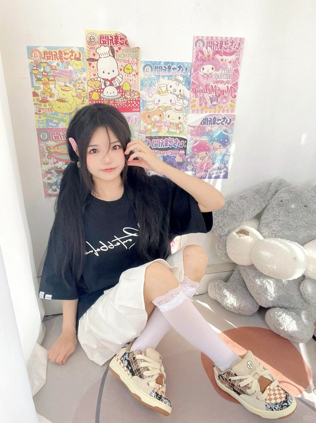 是穿短袖的季节啦!黑t➕百褶裙很青春