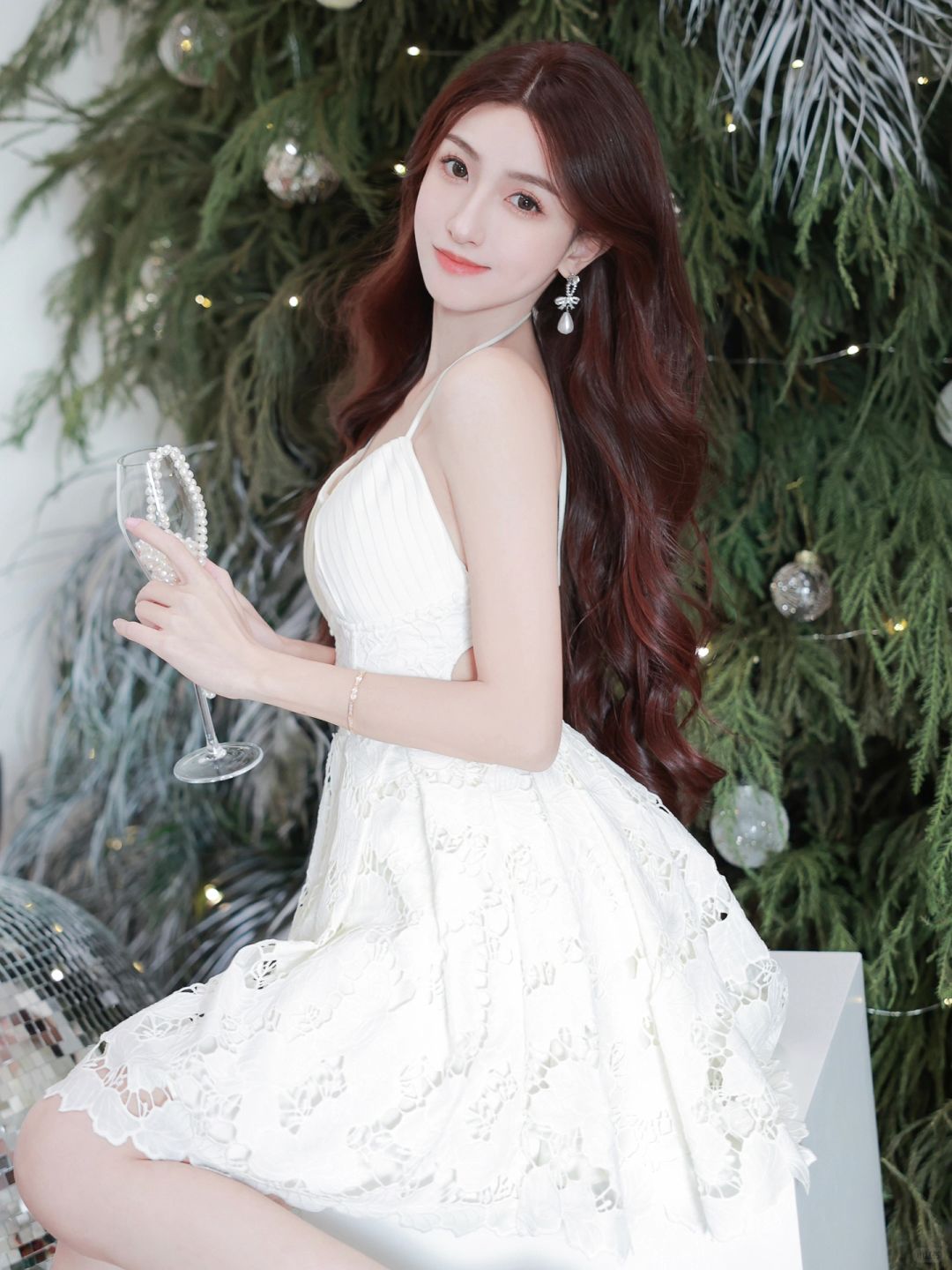 每年最期待的就是圣诞节 相比于往年的明亮红色系 这个白色蕾丝连衣裙真的很温柔~ 珍珠元素的点缀好梦幻 看起来有点像童话世界里的公主❄️ 是你们喜欢的白色系圣诞嘛~