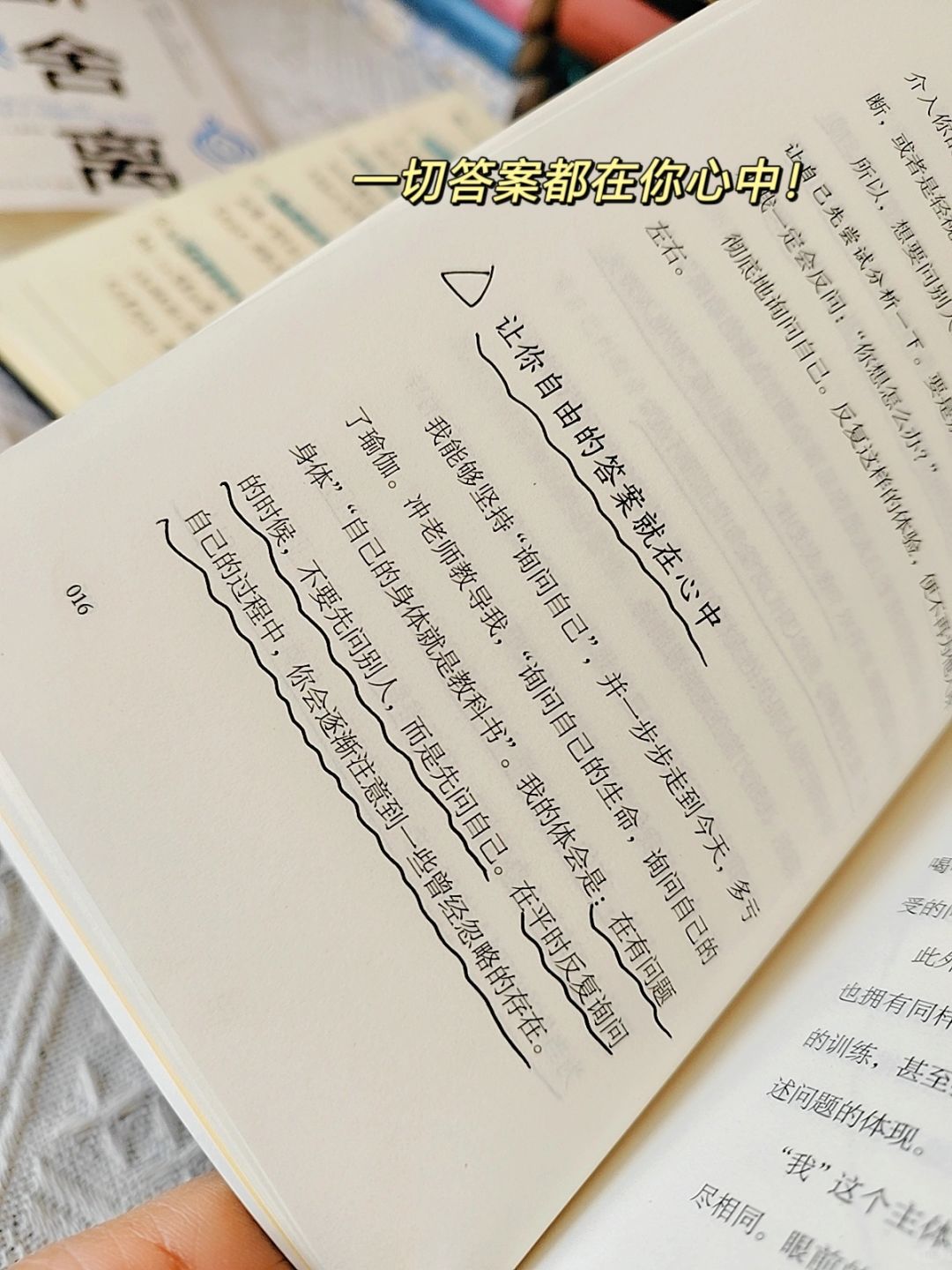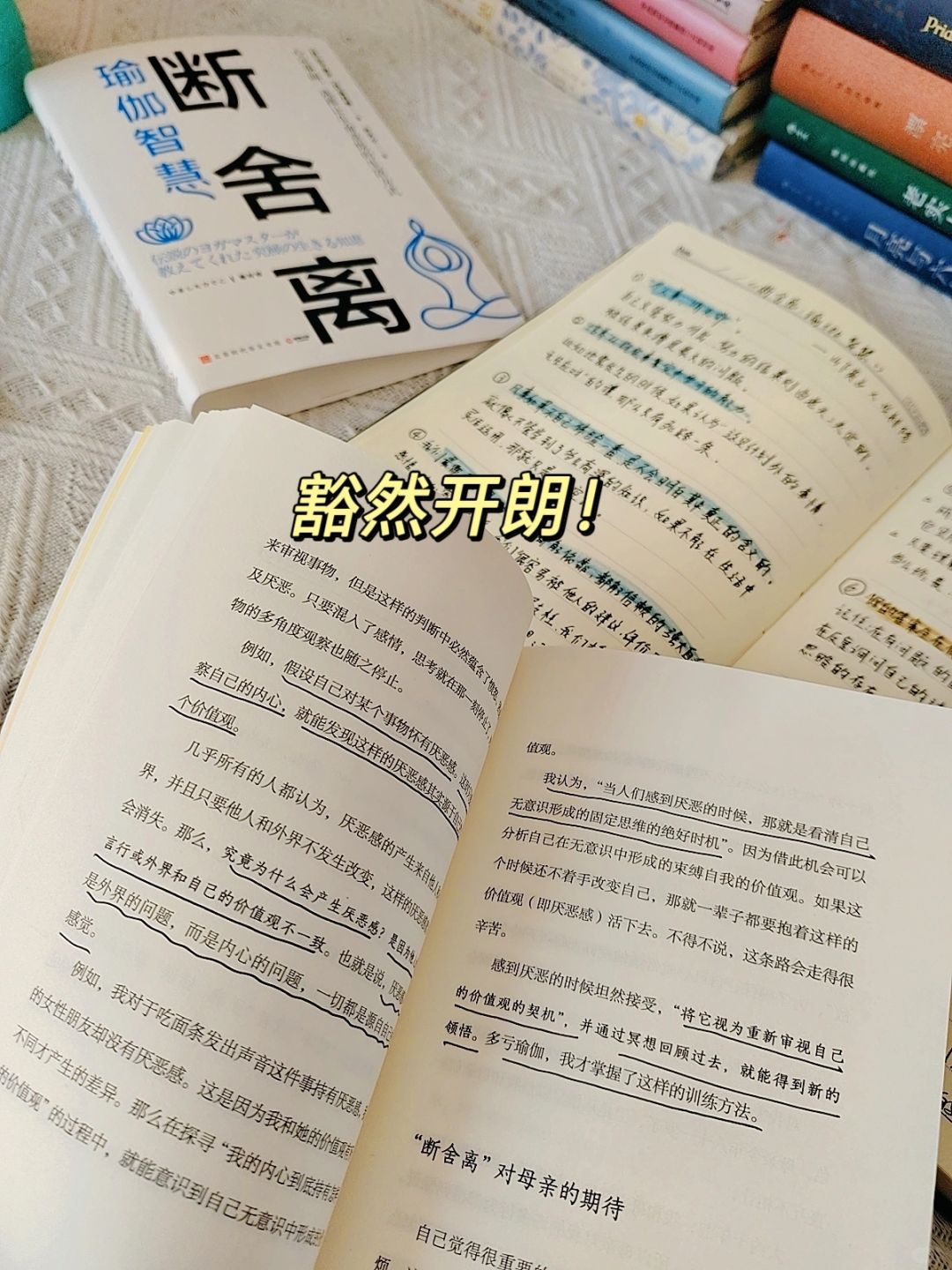 书中是“断舍离”创始人山下英子,和瑜伽大.师龙村修两位老师,把断舍离的智慧和瑜伽的智慧融合在一起,为我们呈现了一种新的思维!!我在读的过程中,读的很慢,字字入心的那种感觉,真醍醐灌顶!!