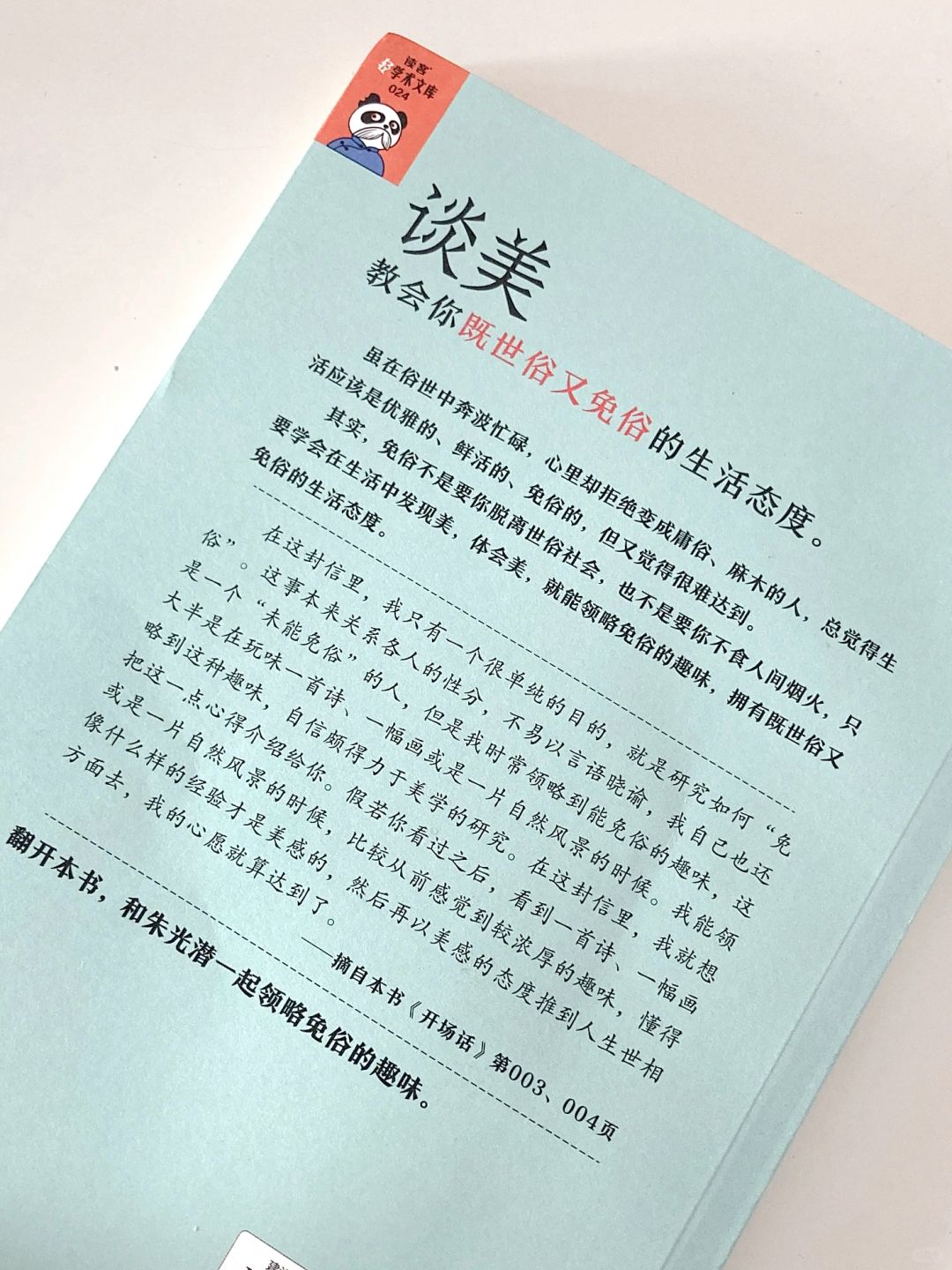 这本书就是在教我们如何“免俗”,当读到一首诗、看到一幅画或一片风景时,内心产生浓厚的趣味,分辨出哪种经验才是美感,把这种美感的态度用到人生世相中去。