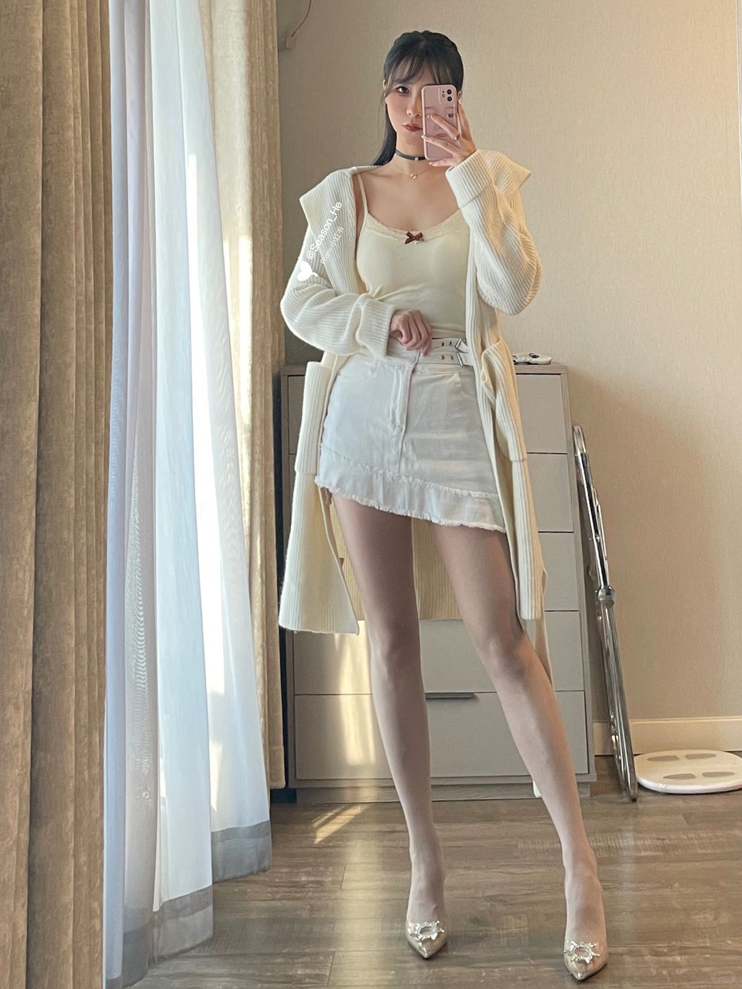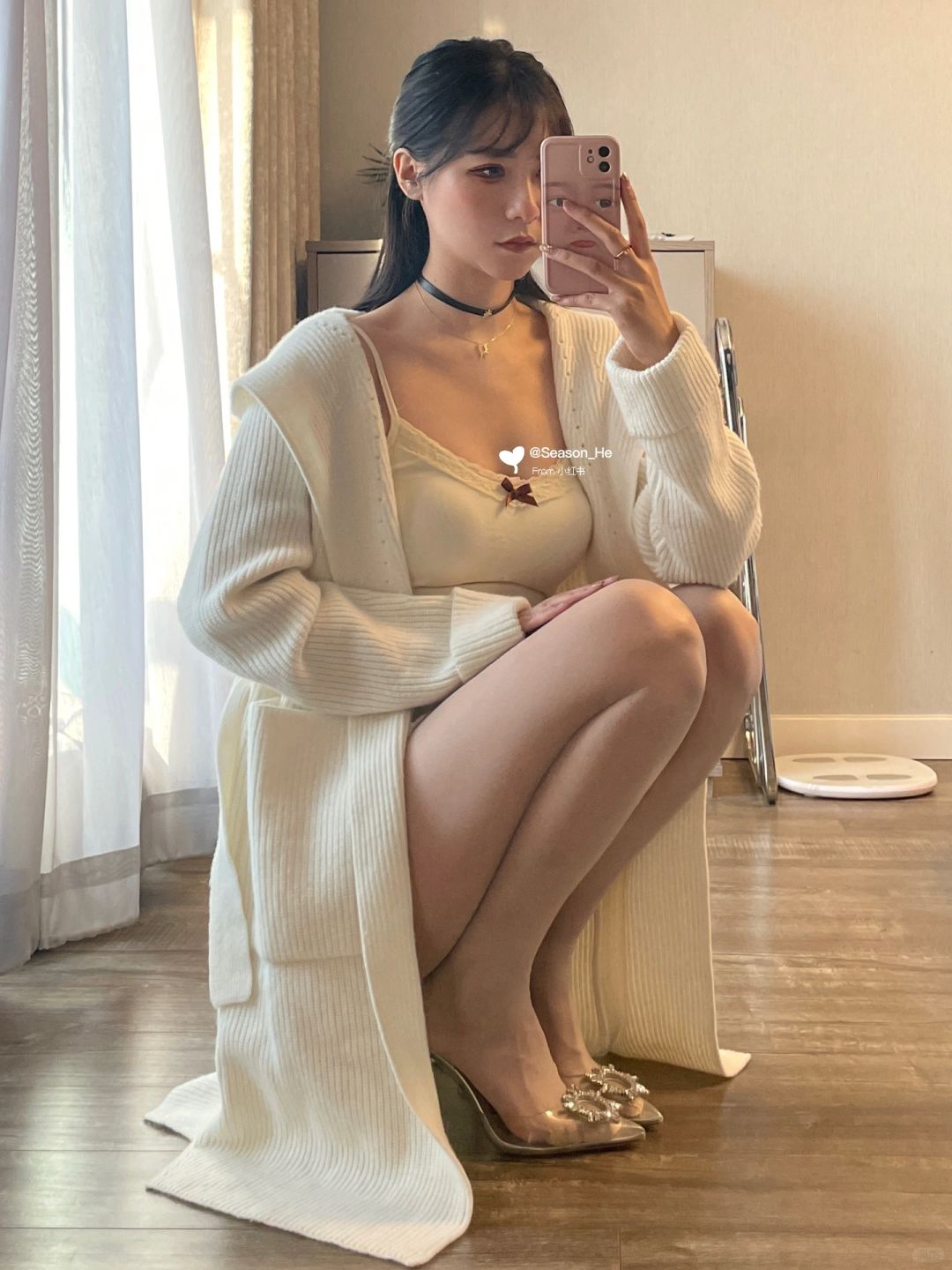 大数据请把我推给喜欢白色穿搭的姐妹 羊绒开衫搭配同色系吊带氛围氛围拿捏