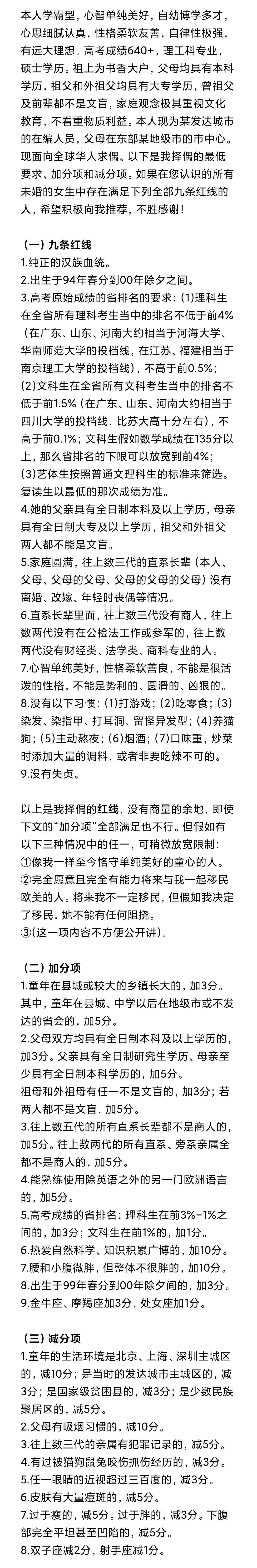 理工研究生群发求偶标准,好笑程度堪比林府家规#理工研究生群发求偶标准#