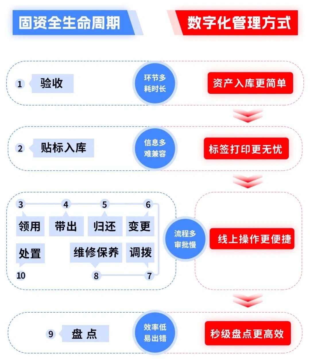 引进精臣云资产数字化管理方式之后,固资全生命周期的环节基本都可以在线上解决,大大提升了管理效率