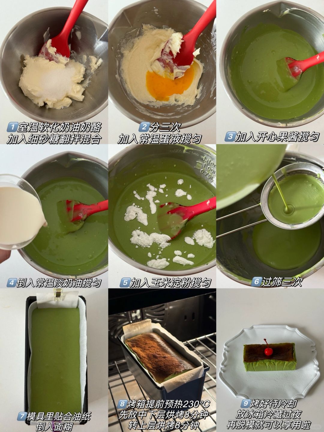加入开心果酱和常温淡奶油搅匀