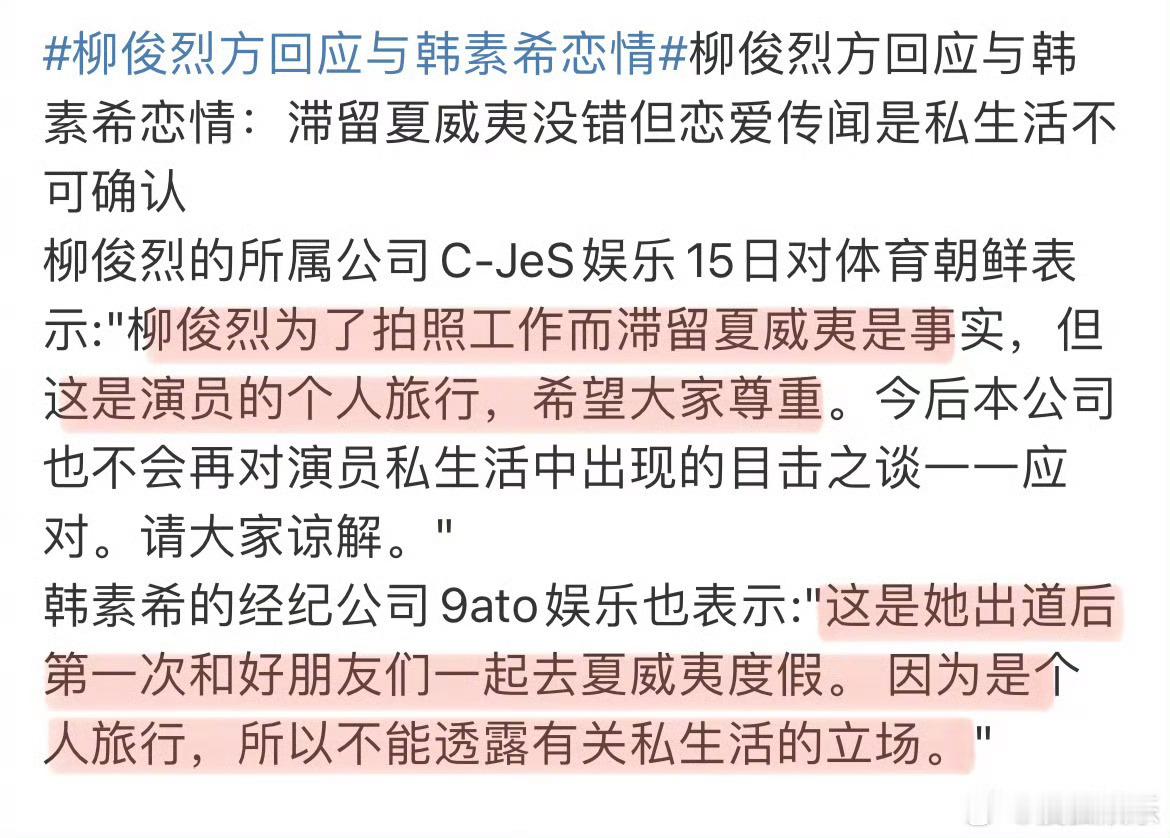 韩素希柳俊烈曝光恋情后,惠利更新ins:有趣啊~