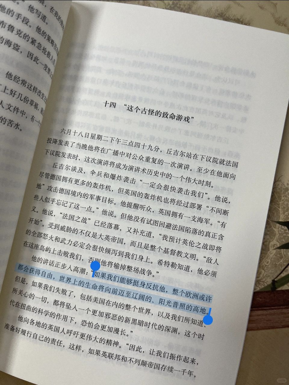 看完此书,对他们经历的苦难感同身受的同时,感受更多的竟然是力量和勇气。面对灾难,人民更加勇敢而不是更加怯懦。因为,丘吉尔教会了他们无畏的艺术。