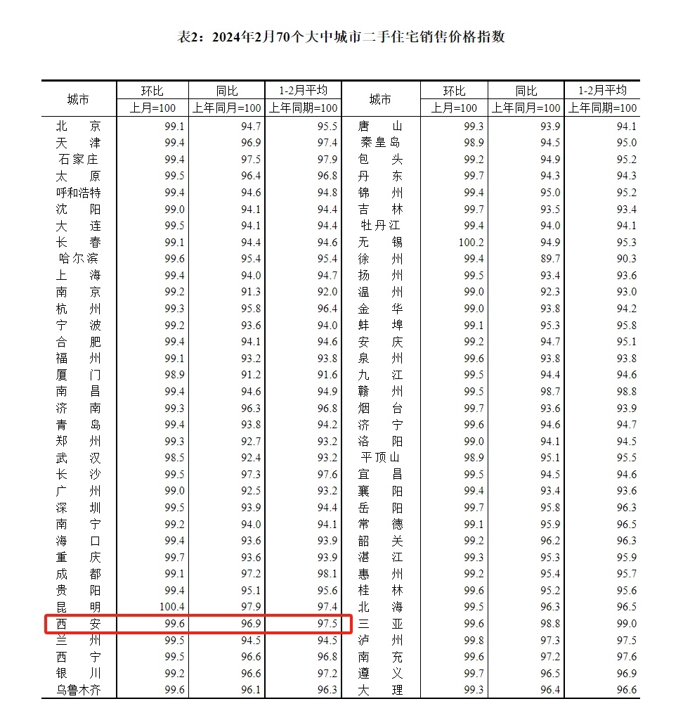 但西安的二房表现却不尽人意,2024年2月份西安二手房“量价齐跌”,环比下跌0.4%,同比下跌3.1%。