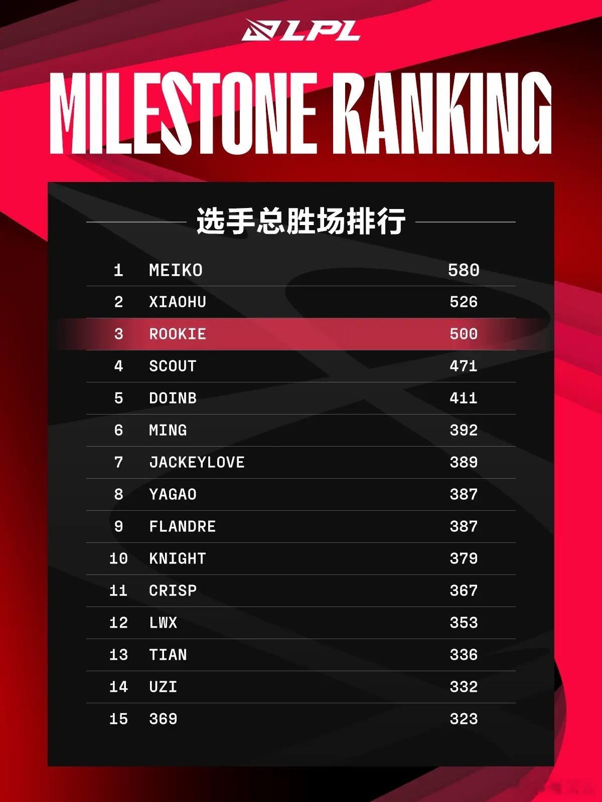 Rookie达成LPL500胜场成就: