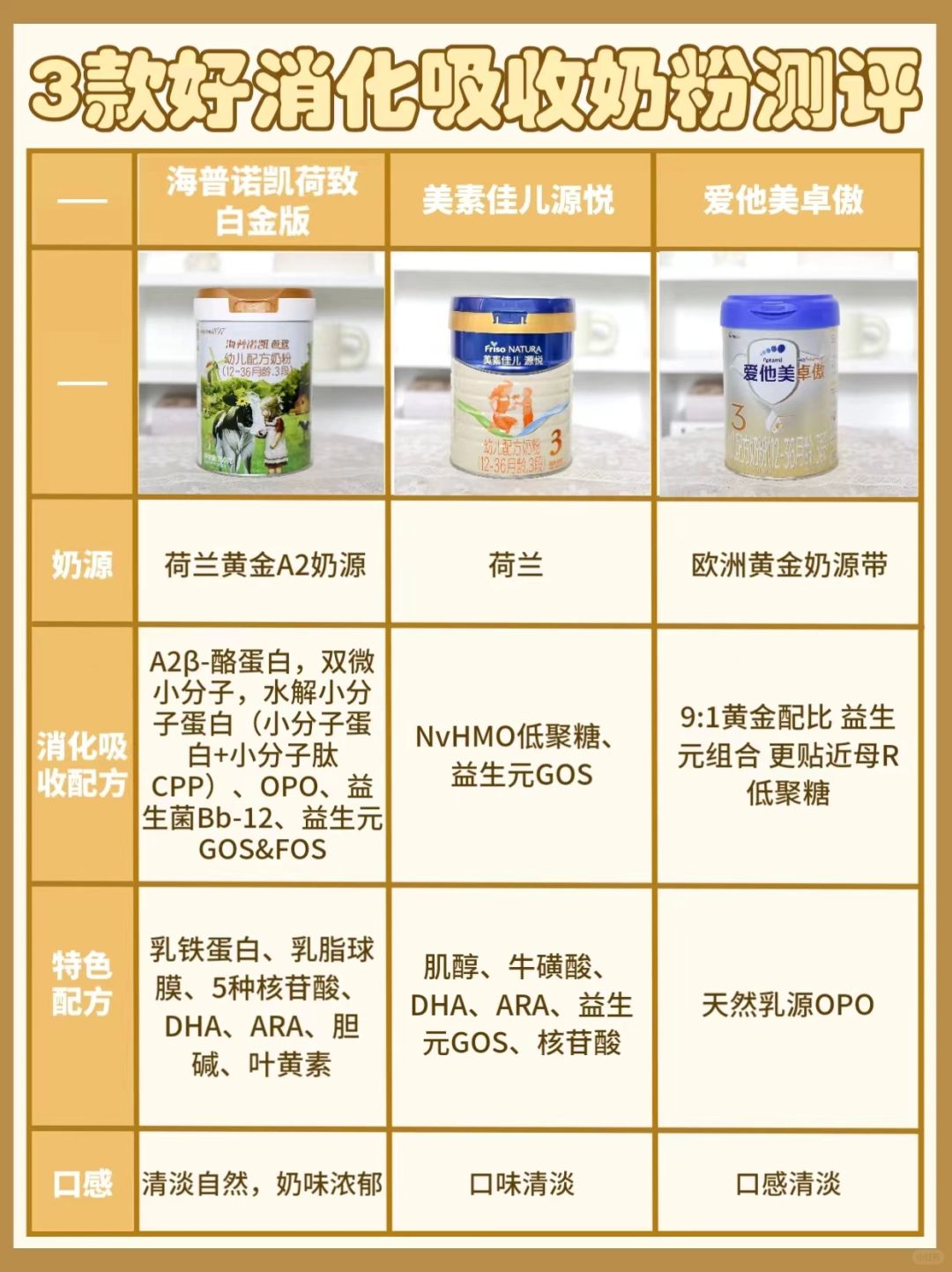 每个宝宝体质不同,需要的奶粉也有所不同 ,但很多宝宝肚肚都不舒服想转奶,但好消化吸收是不可或缺的!!所以选哪款奶粉都让我们🤨纠结万分!今天我也挑选了3款比较热门的好消化吸收奶粉给大家做了一个测评,宝妈们可以参考一下哦~