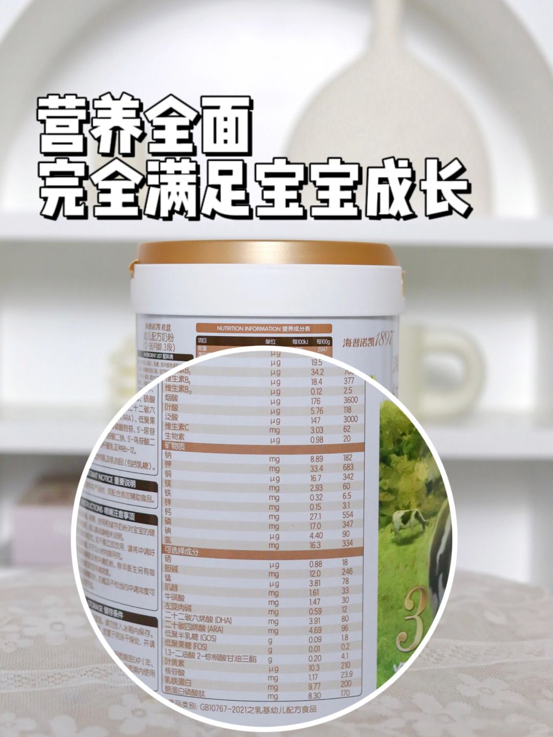 ★特色配方:海普诺凯荷致白金营养很全面59种以上黄金营养。保护力营养方面荷致白金版有高含量乳铁蛋白、乳脂球膜和5种核苷酸。脑视力营养方面除了高含量DHA,还有ARA,胆碱,叶黄素等营养的添加也很丰富