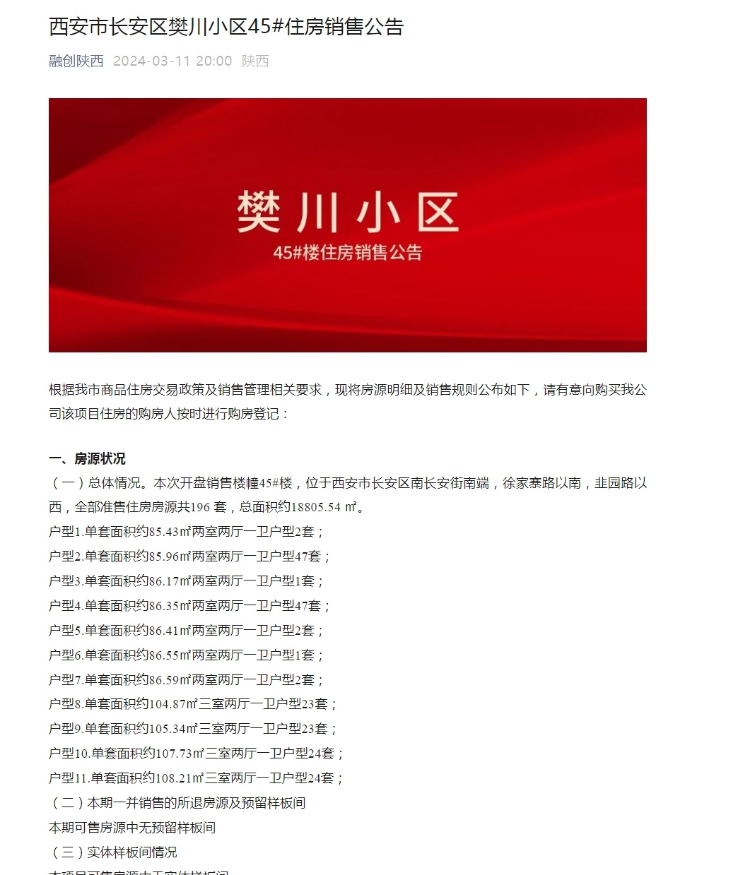 项目距韦曲南地铁站也就500米左右的距离,附近也有长安第十一小、长安第三初级中学这样的公办教育资源;目前最大的槽点就是暴雷后的融创让人担心。