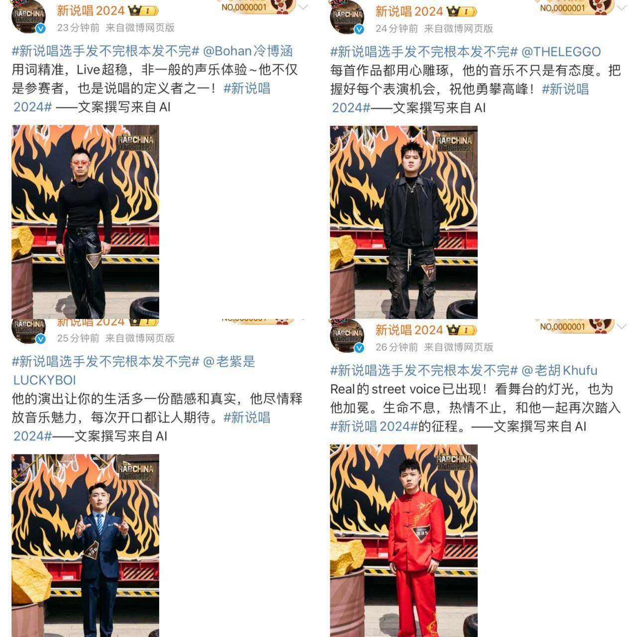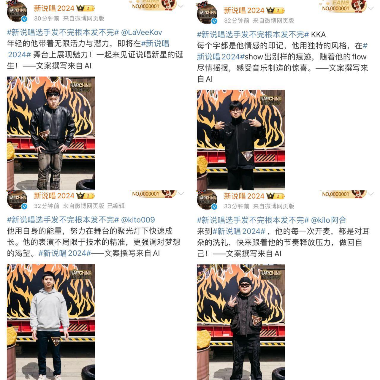 #新说唱选手发不完根本发不完# 你们传媒工作者也有自己的预制菜是吧??新说唱官微今天的发癫宣传真的看愣我了,不管是发几百条选手照片还是让AI写文案[允悲]你们新说唱真的很抽象!但有一说一,今年选手阵容不错,subs、林渝植、乌鸦都来了,这海选有的看了啊!#新说唱2024#