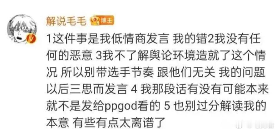 4、我觉得没能第一时间get到并且说出来,顶多是让人有点失望吧。确实不至于被狂喷就是了。至于这个赛后微博,不知道为什么很有朱开的风格。
