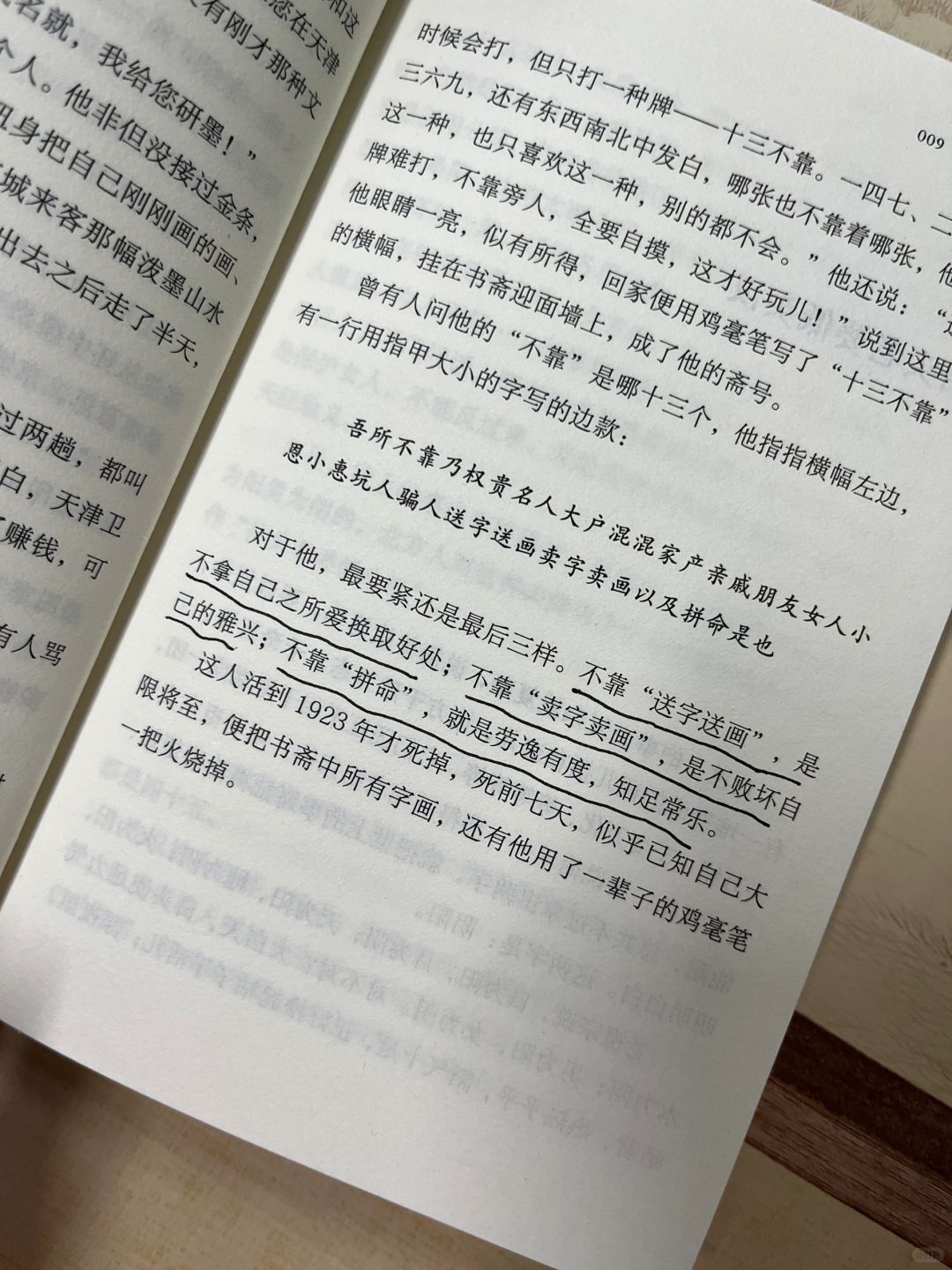 在《十三不靠》中,汪无奇是一个造笔的人,字画也相当境界。有人出重金购他的画,他却把画撕了。还给自己立了“十三不靠”的规定。在去世前还把所有字画和用了一辈子的鸡毫笔一把火烧掉。他舍去世人眼里的荣华富贵,遵从与坚守本心,安然自得。