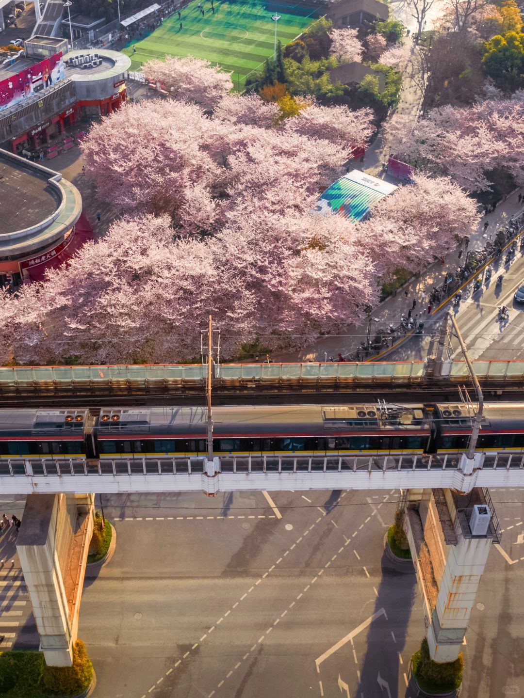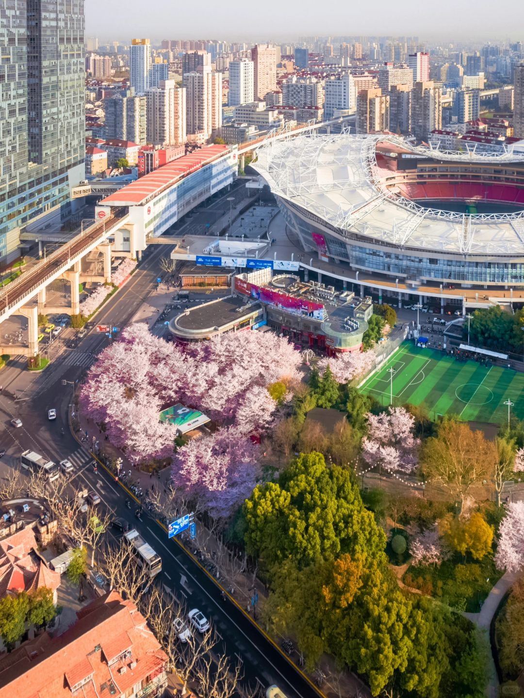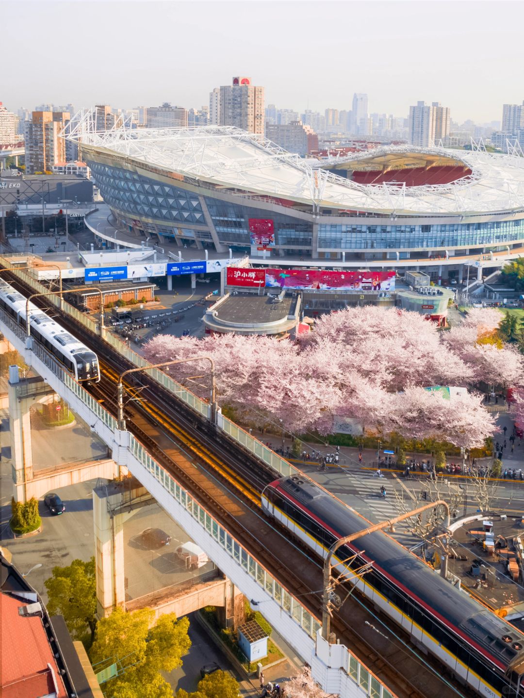 我是几奈,坐标上海的90后摄影博主 又到了一年一度的樱花季 魔都市中心的赏樱胜地如期盛开 这里又被成为春天里的最美地铁站🌸 · 📍地铁虹口足球场站-6号出口 📅最佳赏花期:3.20-3.31 🌟最佳拍摄时间:早6-8以及下午4-6光线柔和 ✈️拍摄设备:无人机航拍以及70-200MM 航拍不仅能看到地铁站被樱花的海洋包围 还可以拍摄到地铁在樱花中穿行的浪漫画面 ·