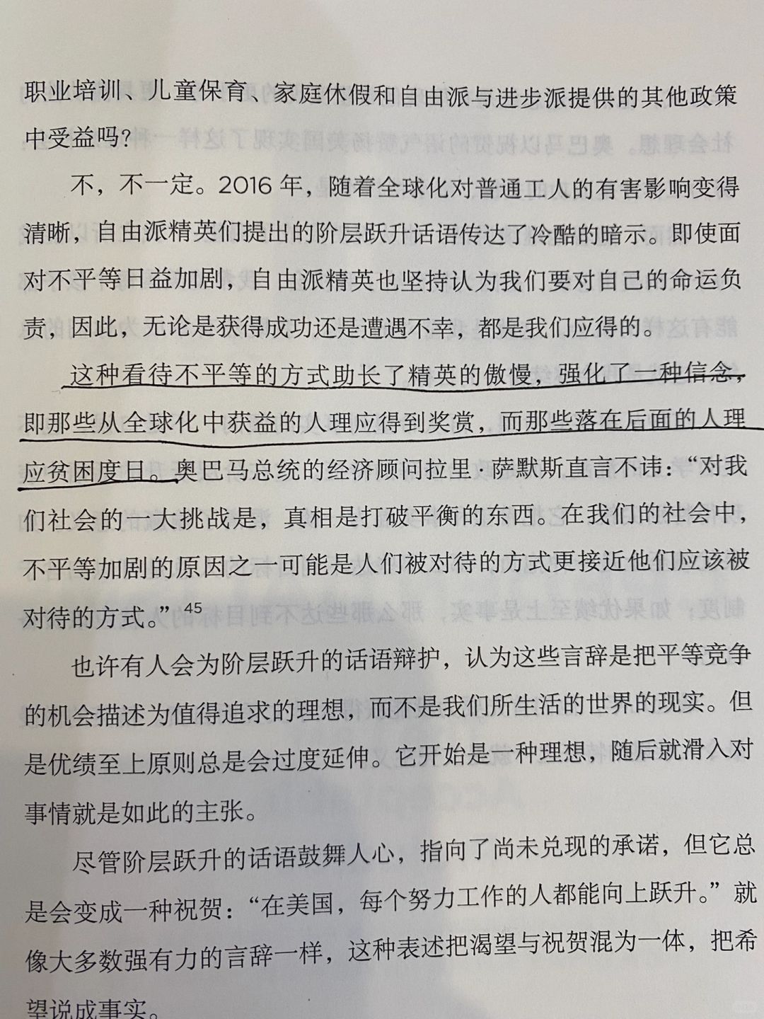这个时代工资水平停滞不前,人们还丧失社会尊严。于是以学历、金钱等为上的优绩至上理念占据了人类的生活空间