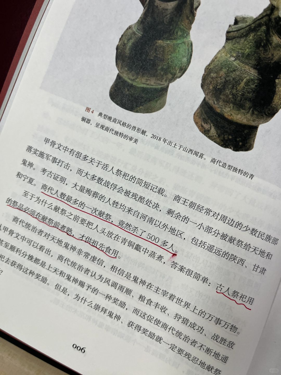 1984年,河南殷墟遗址出土了一件青铜甗(商代的炊具)。可是,里面装的不是食物,而是人头。由此揭开了一段血腥的历史。商代用活人献祭的恐怖历史长达近600年。因此,商代文物中散发着一种神秘而狰狞的特质,给人带来不适感。