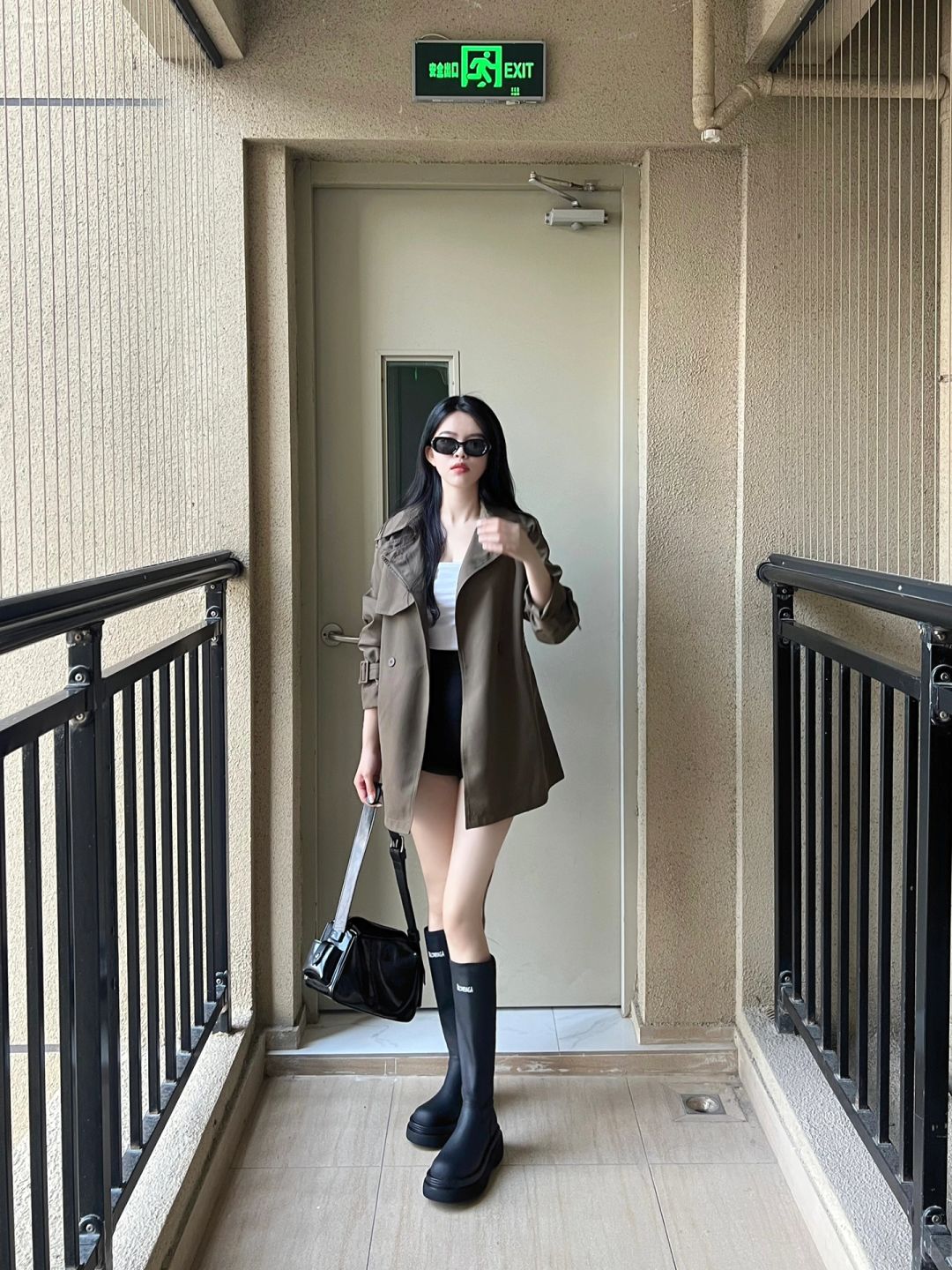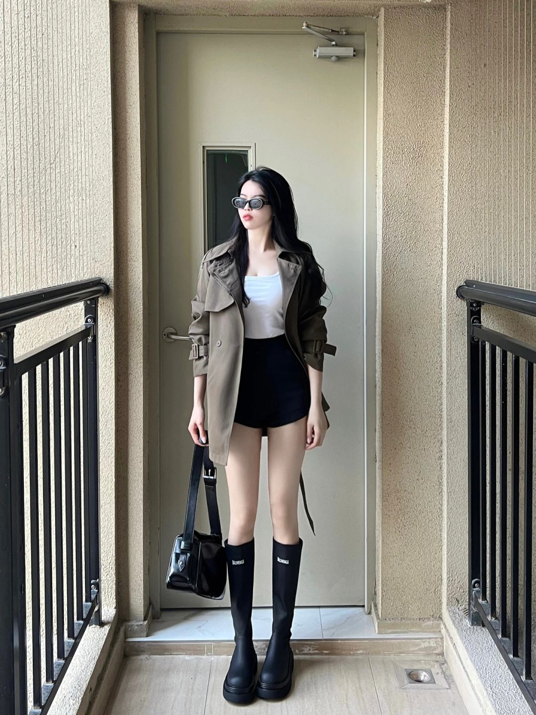 宋妍霏印花超短裙搭配黑色长靴,尽显修长圆润柔美腿部线条!