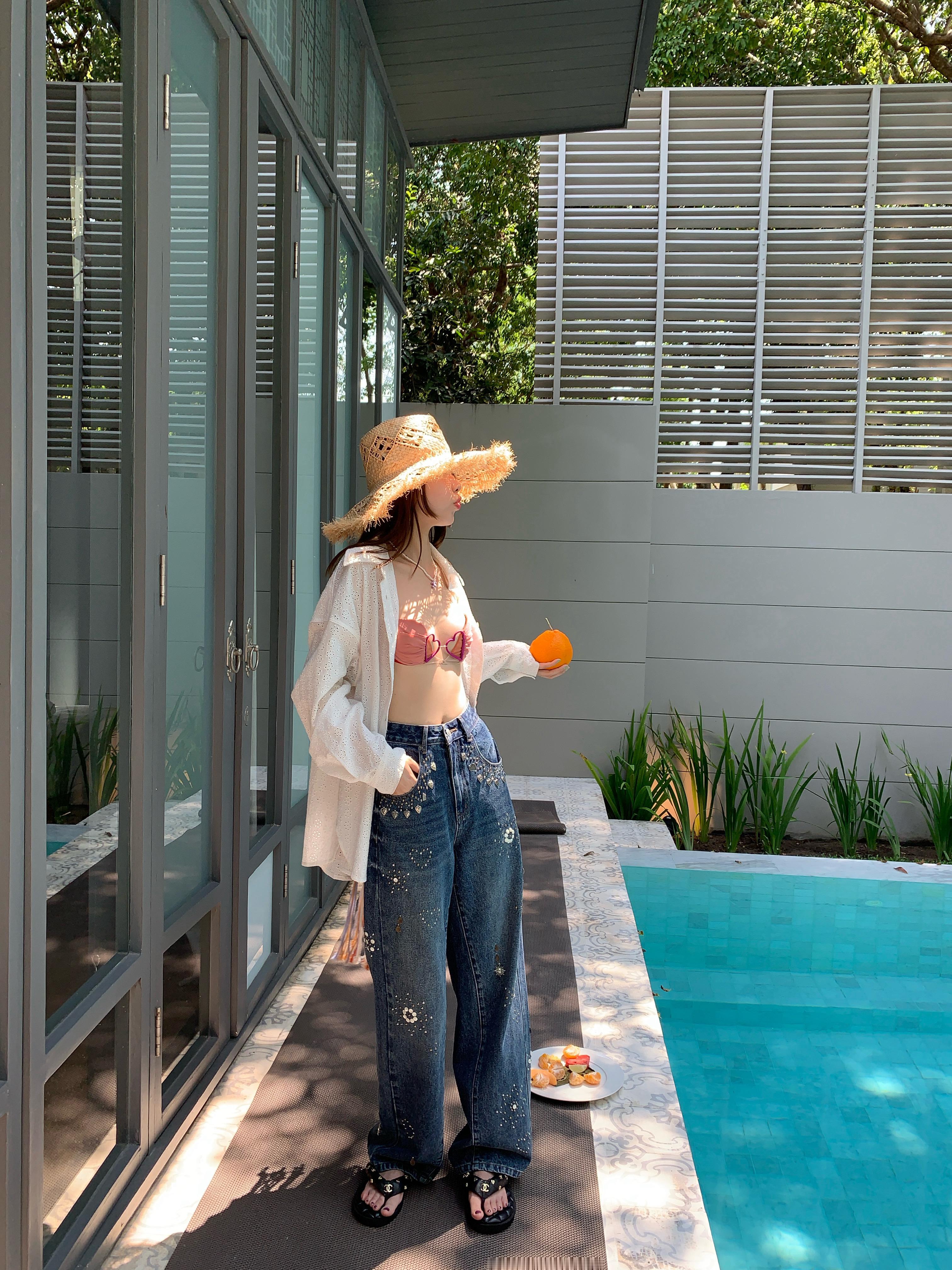 早呀 彩石流苏好有夏天的味道🪸醋酸滑滑裤好舒服好有质感 藕粉色很特别 市面上都