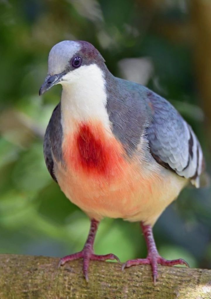 🍀形态特征:吕宋鸡鸠平均体重184克,体长30厘米。平均翼展为38厘米。白色胸口上的“红斑”是其主要特征。腿部较长,呈红色;尾部较短;翅膀呈浅蓝灰色;喙部为黑色。